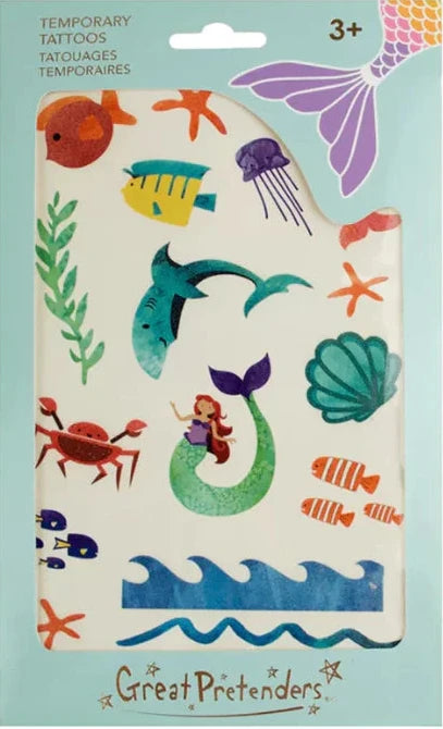This set of Mermaid temporary tattoos features unique and adorable sea-themed designs for kids to decorate their skin - temporarily, of course!