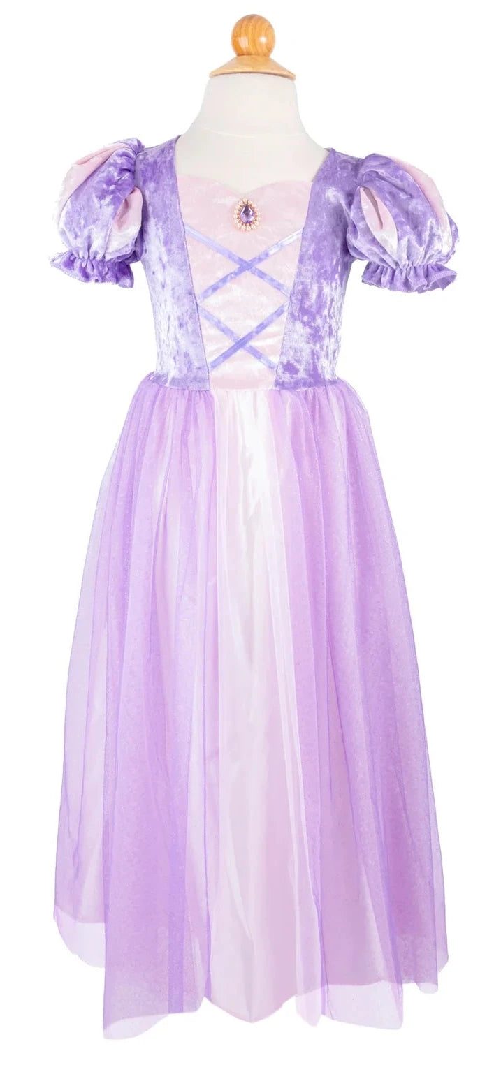 The full-length skirt is made with layers of soft tulle, adding volume and a dreamy, twirling effect that’s perfect for any princess. Whether it’s for a costume party, a special occasion, or everyday adventures, this dress is sure to make your little one feel like they’ve stepped right out of a magical tower!