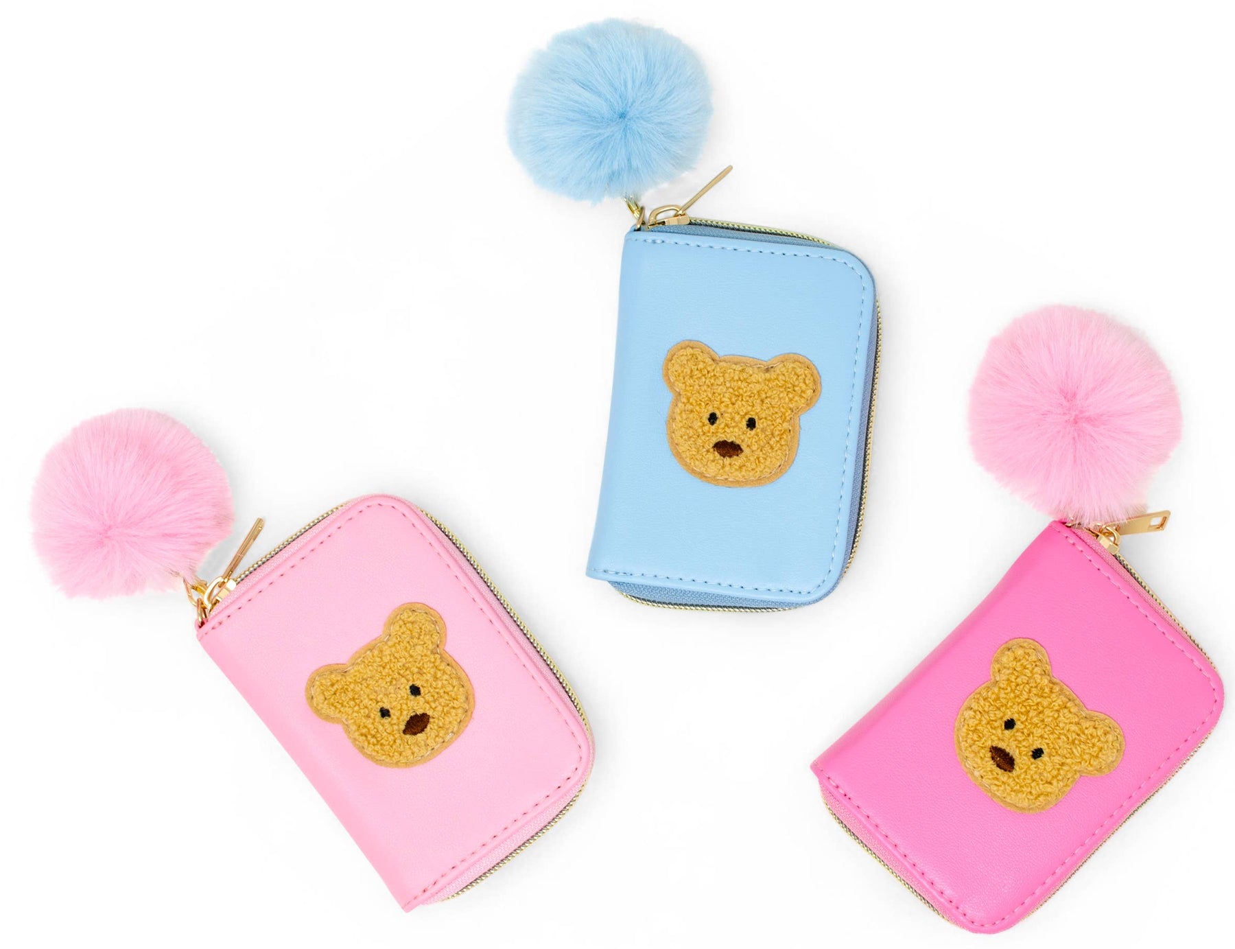 This adorable kids wallet is the perfect blend of cute and practical. Featuring a soft teddy bear patch on the front and a fluffy pom pom zipper pull, it adds fun to every day. The secure zip-around closure keeps coins, cash, and small treasures safely tucked inside. Perfect for backpacks, mini handbags, or little hands on the go!