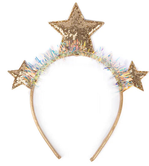 Add a twinkle to your holiday look with our Twinkle and Tinsel Star Headband! This playful accessory features three sparkly stars perched proudly on top, catching the light with every move. Wrapped in festive gold tinsel, the band brings instant cheer and shimmer to your outfit — whether you're dressing up for a Christmas party, caroling with friends, or just spreading holiday joy.