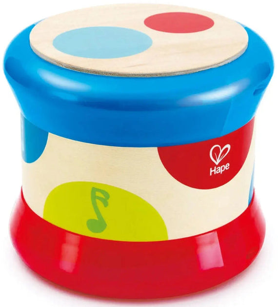 - Your toddler will most likely try and play with this in more ways than one, so we created one drum that can do it all. When stood, the drum can be beaten, with each colored circle emitting a different sound and triggering a colored light. When rolled, the drum emits dazzling lights and music