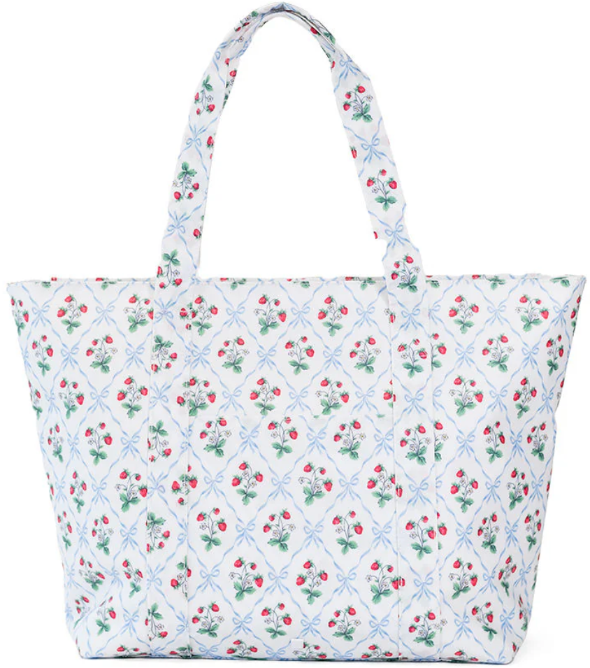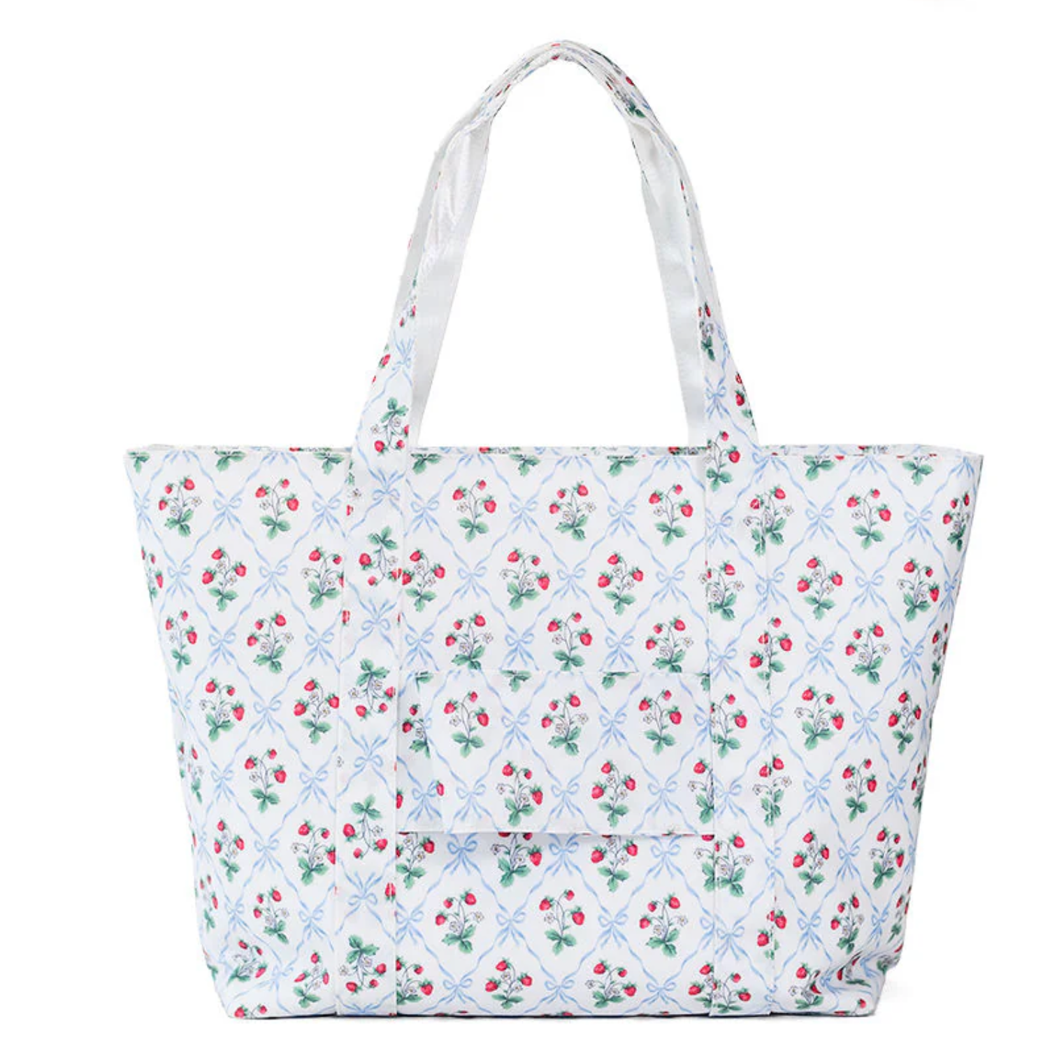 Get around effortlessly with our new Jumbo Tote. This do-it-all lightweight tote is useful year-round for all occasions - as a beach bag or for your everyday needs. Underneath the strap is satin webbing designed to prevent from slipping, an interior full slip pocket and zip pocket, a front exterior pocket, and an exterior trolley passthrough.