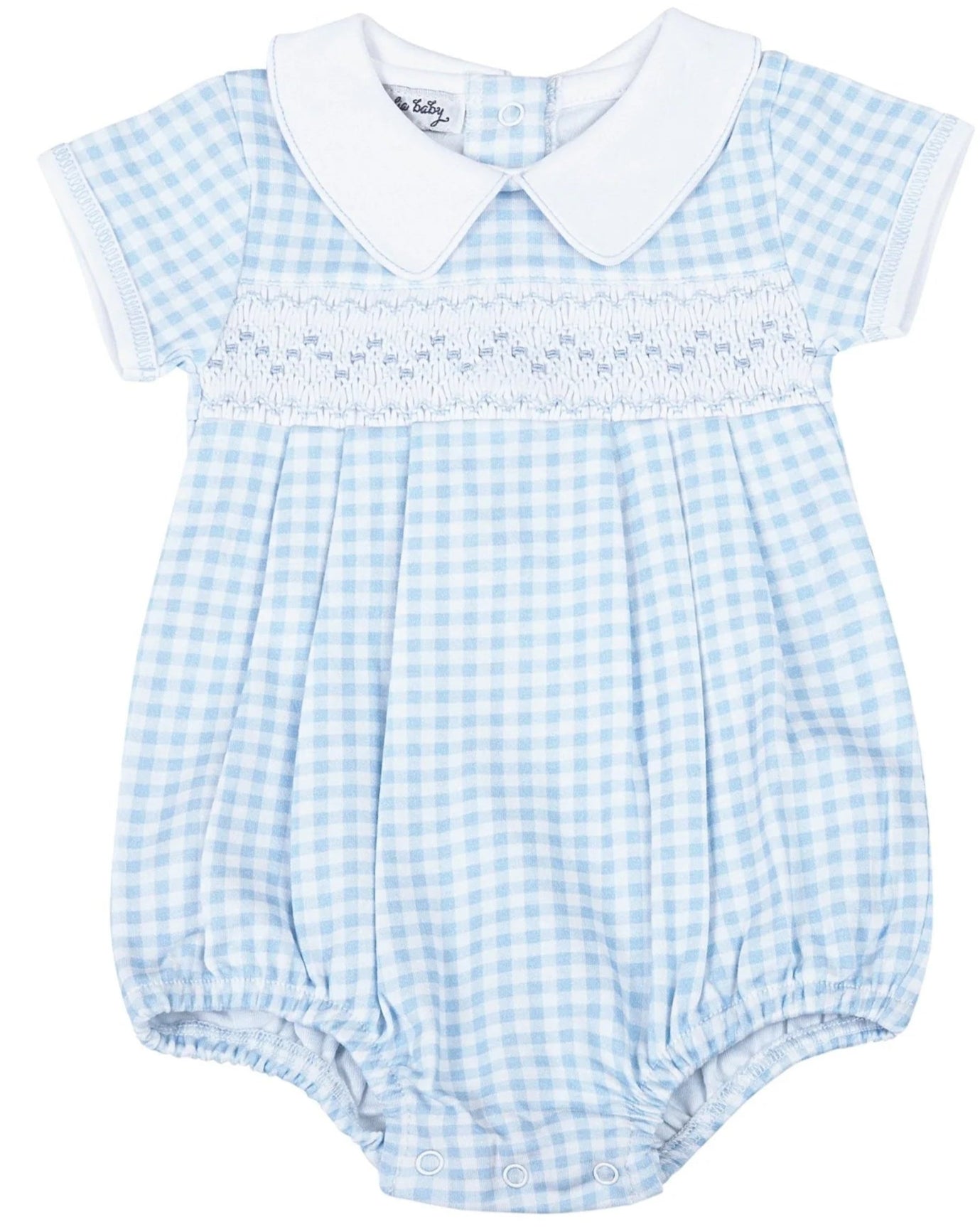 Welcome your little one home in style with our charming Mini Checks Smocked Bubble in Blue. Crafted from the most luxurious Pima Cotton. Perfect for special occasions, parties, and those precious first moments, this bubble is sure to make a lasting impression.