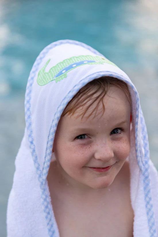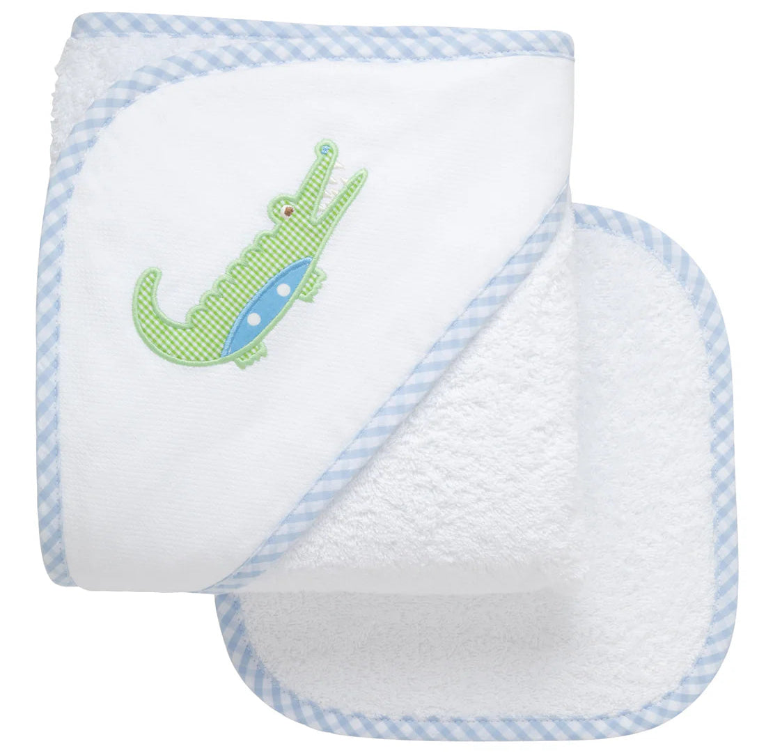 Alligator Applique Hooded Towel & Washcloth Set - Blue