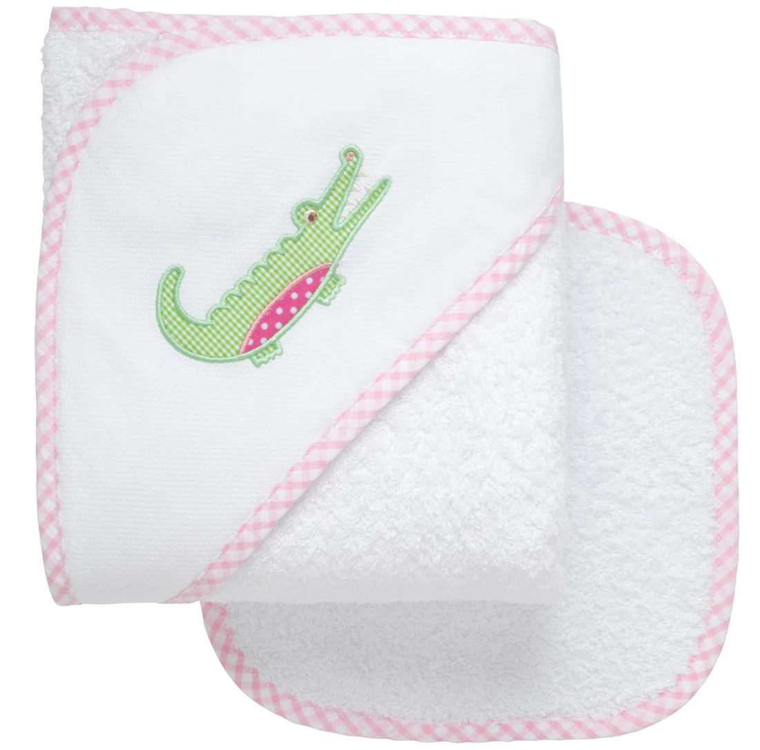 Made from ultra-soft, pure cotton terry, this towel is gentle on your baby’s sensitive skin—perfect for cozying up after a warm bath or a dip in the pool. It’s big enough to grow with your little one, lasting all the way through their toddler years! The cozy hood features a soft pique fabric that’s perfect for adding a monogram (for that extra personal touch) and backed with fluffy terry cloth for extra absorbency. Plus, the matching washcloth is trimmed with coordinating fabric to complete the cutest bath time set ever!
