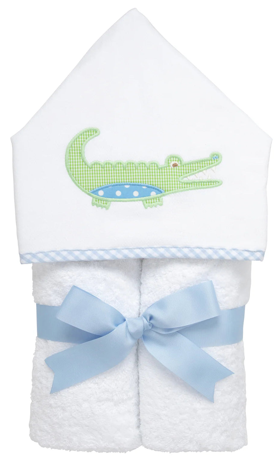 Our everykid towels are ideal for older children and also make a wonderful "grow into" baby gift. They feature a terry lined hood, which is sewn to a long side of the towel and is embellished with one of our signature appliques. Perfect for bath, beach or pool time; each towel comes ready for gift giving - rolled and tied with a beautiful grosgrain ribbon.