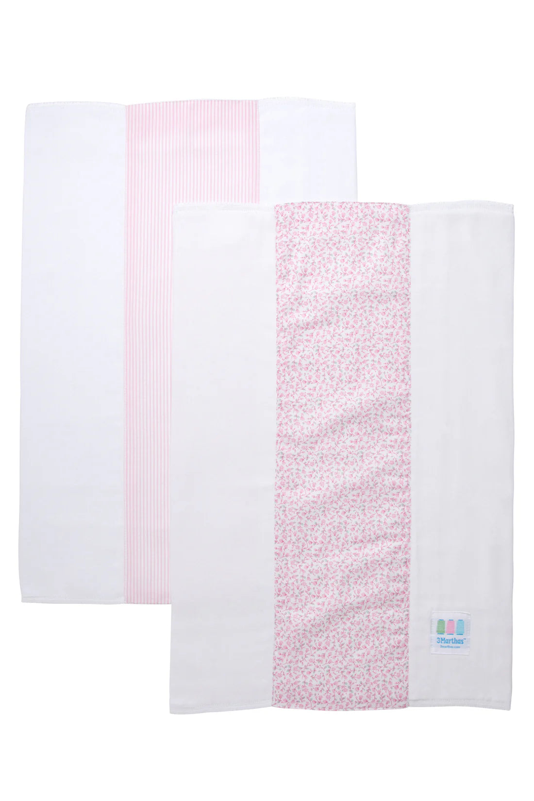 Our Set of Two Burp Cloths is one of our most practical and beloved products! Made from highly absorbent, traditional cloth diapers, this set of two burp cloths is designed to handle even the messiest feedings. Each burp cloth features a beautiful fabric panel sewn down the center, adding a touch of style to this essential baby item.