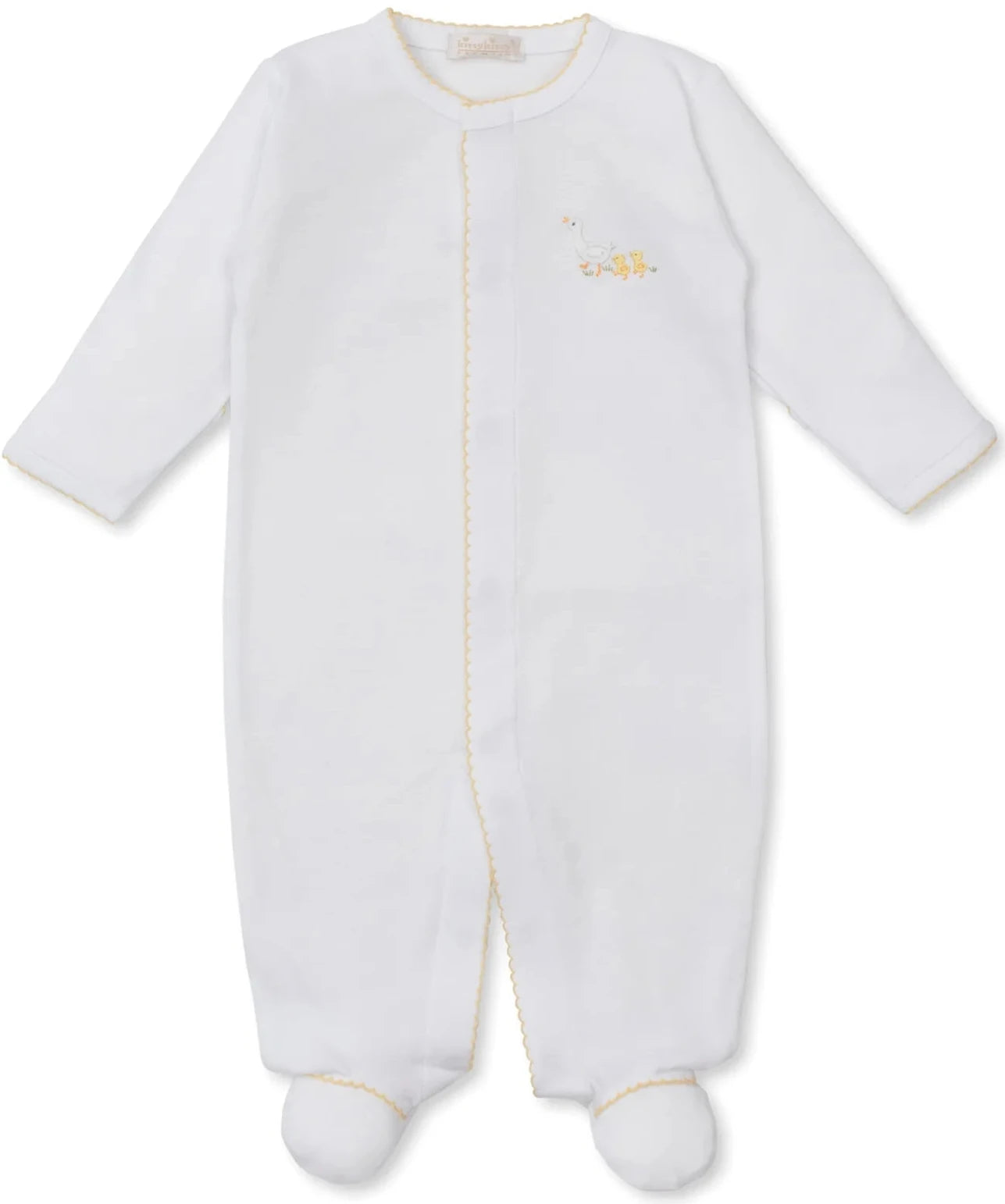 The softest, coziest footie from our Premier Baby Duckling Collection is crafted from the finest Peruvian cotton, with delicate hand embroidery and timeless design.