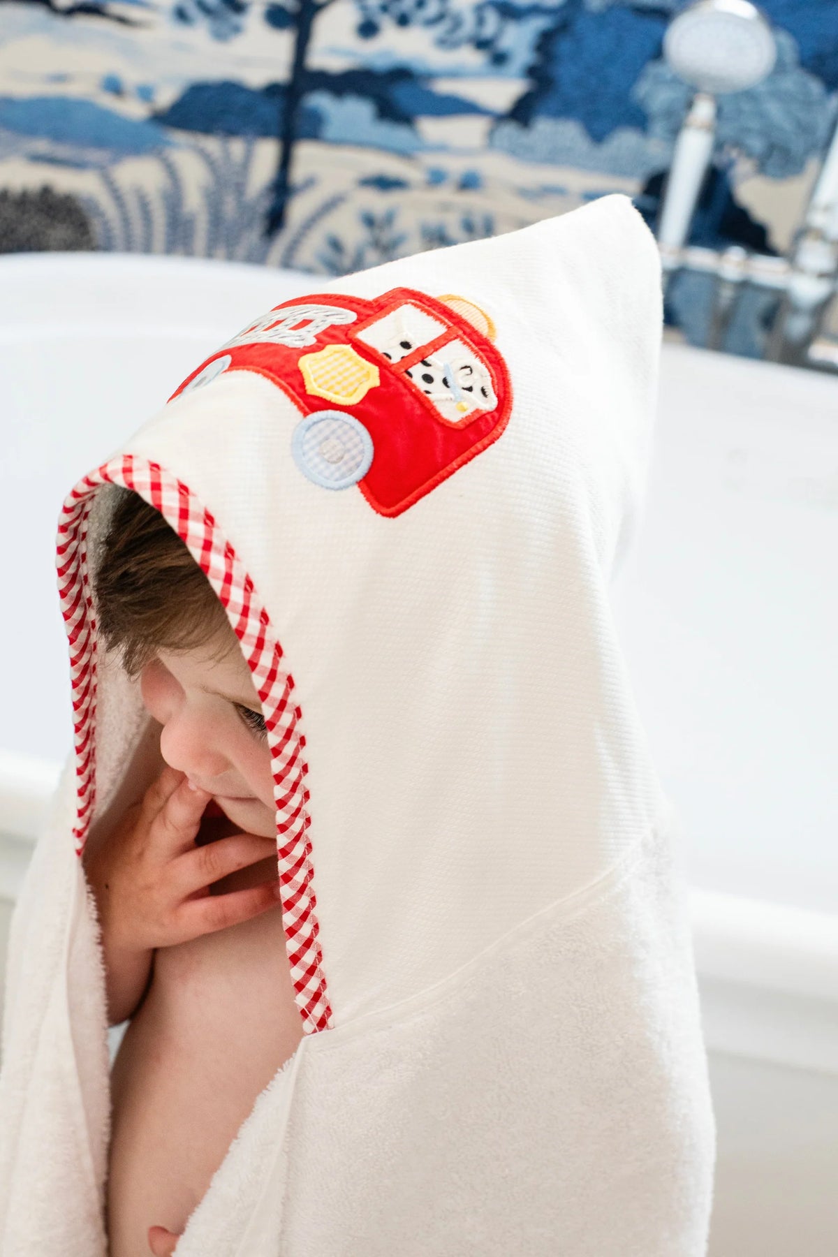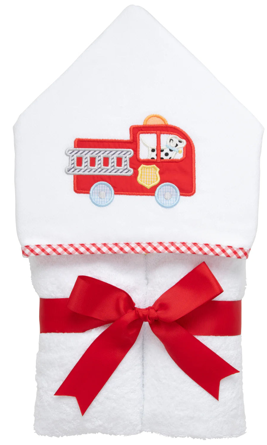 Our everykid towels are ideal for older children and also make a wonderful "grow into" baby gift. They feature a terry lined hood, which is sewn to a long side of the towel and is embellished with one of our signature appliques. Perfect for bath, beach or pool time; each towel comes ready for gift giving - rolled and tied with a beautiful grosgrain ribbon.