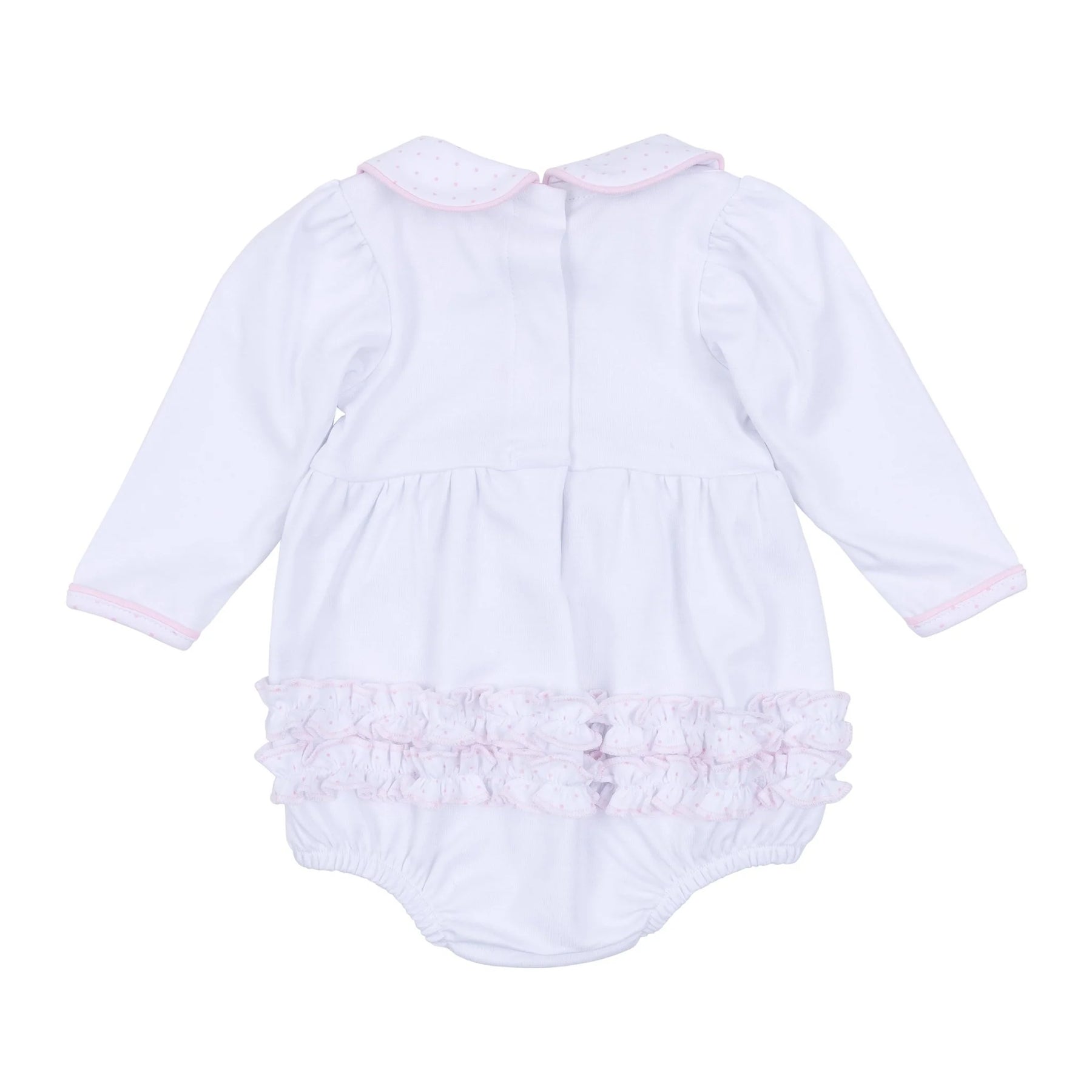 Magnolia Baby - Frosted Wonderland Collared Ruffle Long Sleeve Bubble - Pink