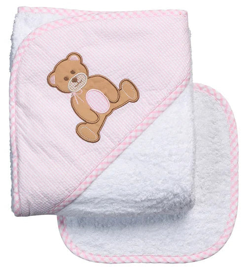 Made from ultra-soft, pure cotton terry, this towel is gentle on your baby’s sensitive skin—perfect for cozying up after a warm bath or a dip in the pool. It’s big enough to grow with your little one, lasting all the way through their toddler years! The cozy hood features a soft pique fabric that’s perfect for adding a monogram (for that extra personal touch) and backed with fluffy terry cloth for extra absorbency. Plus, the matching washcloth is trimmed with coordinating fabric to complete the cutest bath time set ever!