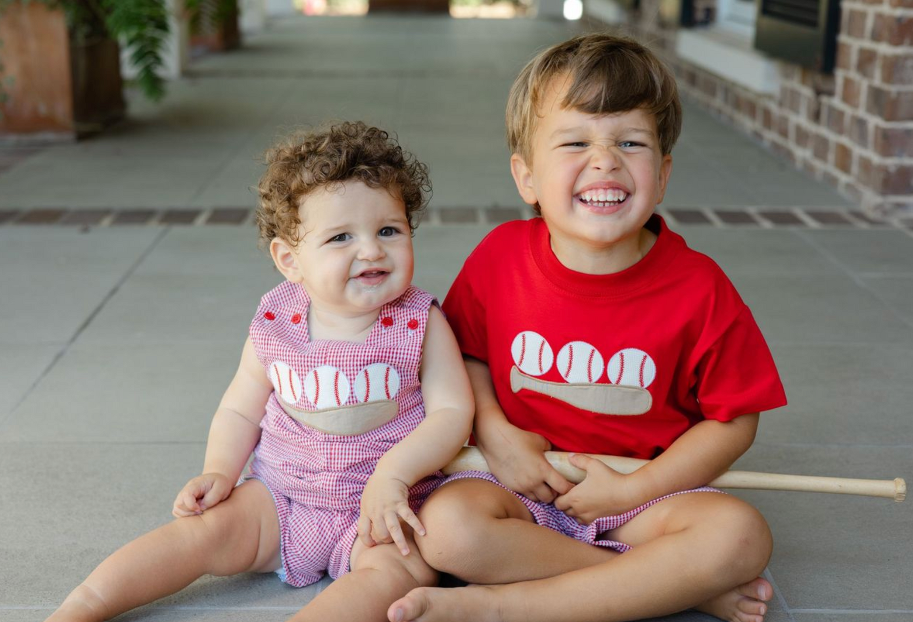 Classic and fun, the Batter Up Boys Short Set celebrates America’s favorite pastime in Southern style. Featuring embroidered baseball details and crisp cotton fabric, it’s perfect for picnics, Easter, or watching the big game. Comfortable, timeless, and photo-ready.