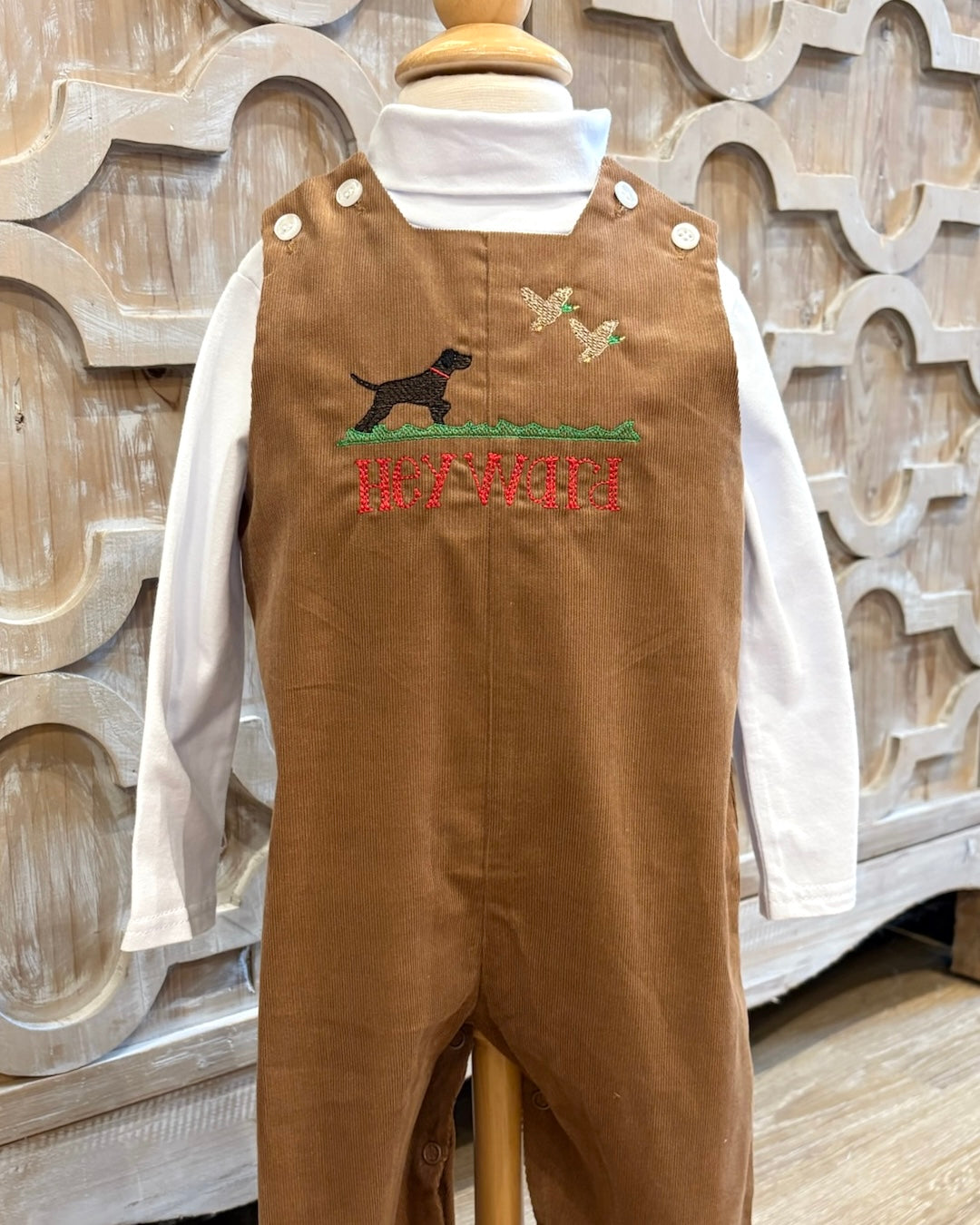 This classic John John in rich Chocolate Brown Corduroy is a wardrobe essential for your child. Made of soft and long-lasting material it has button at the shoulders for easy dressing. The classic design provides a touch of sophistication that is dressy enough for holiday dinners or Sundays but relaxed enough for everyday wear. Coordinate it with a button-front shirt or a cozy sweater for a coordinated look.