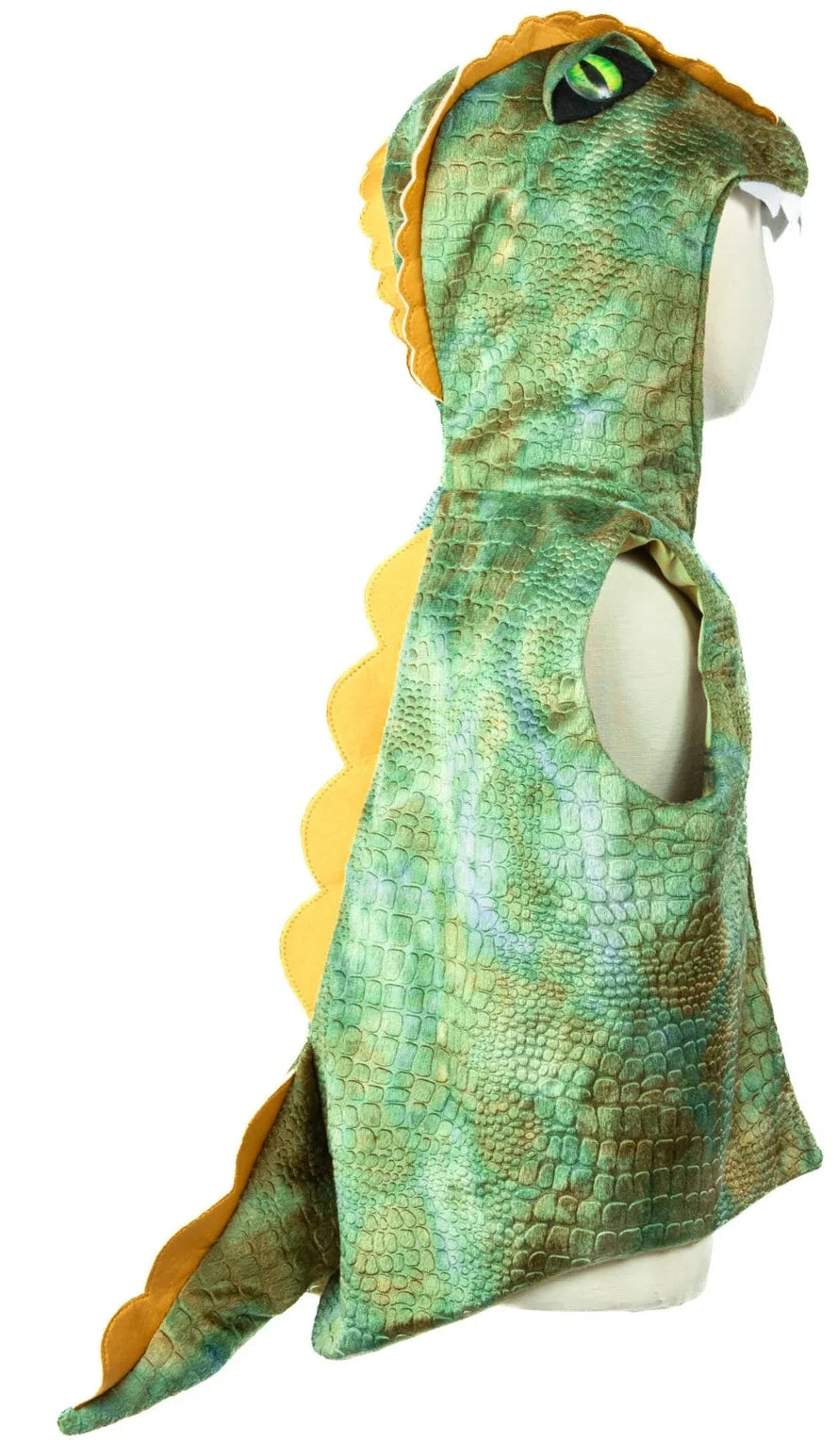 Lined with a fun striped green fabric for extra flair, this vest includes dinosaur spikes running all the way down the spine and tail, completing the look of a mighty, roaring dino ready for action. Perfect for dress-up, imaginative play, or any day that needs a little extra adventure, this vest will have your little one roaring with excitement!