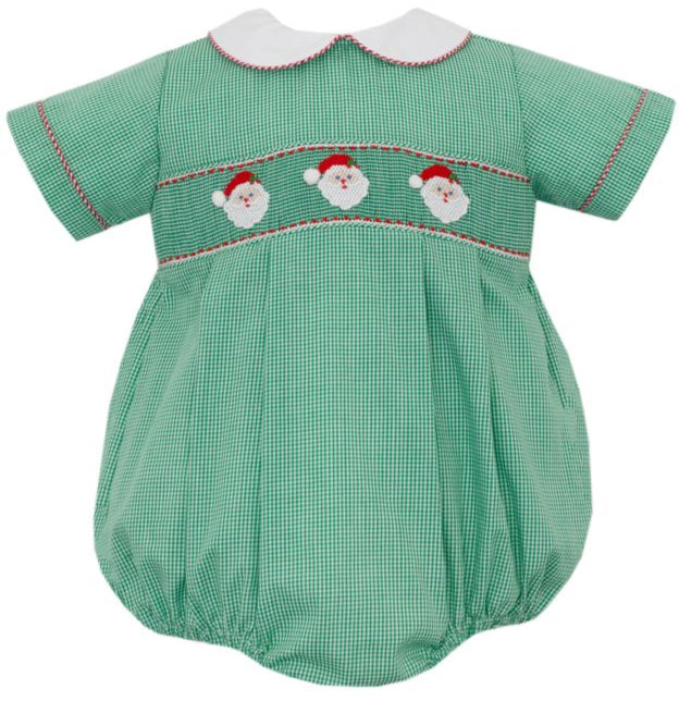SANTA FACE BOY´S - Green gingham boy´s bubble S/S