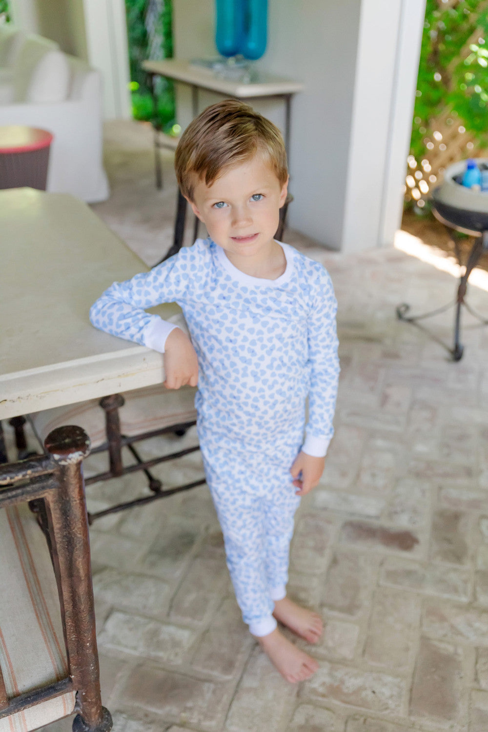 Pima cotton long sleeved pajama top and pant set. Pants have an elastic waistband. Made from 100% Peruvian Cotton. For child's safety, garment should fit snugly. This garment is not flame resistant. Loose fitting clothing is more likely to catch fire.
