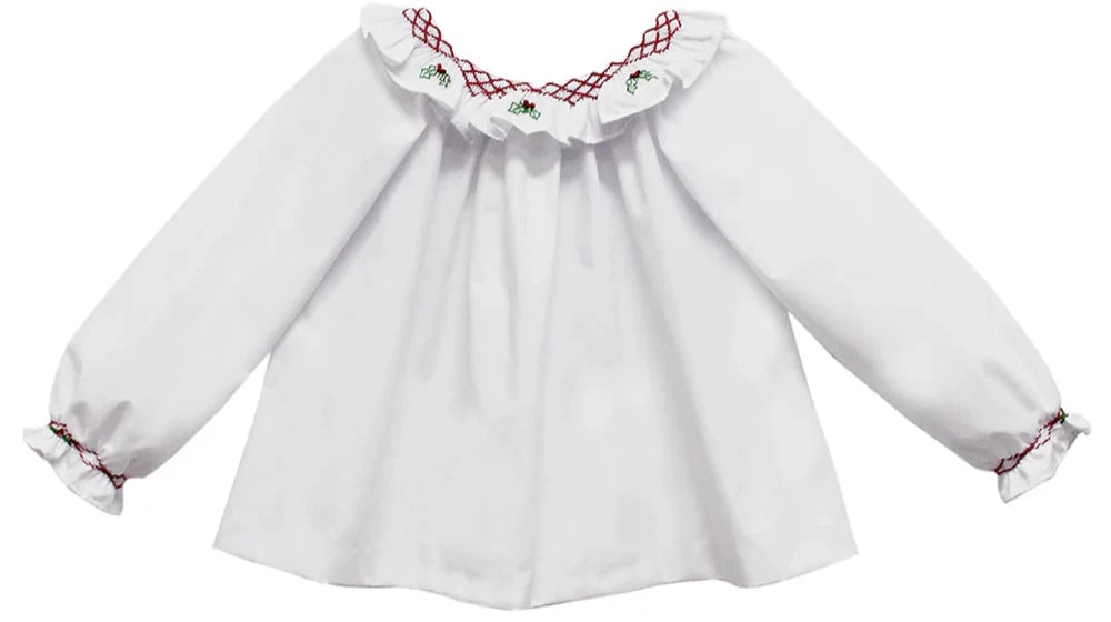 White Broadcloth Red Flower Scarlett Blouse