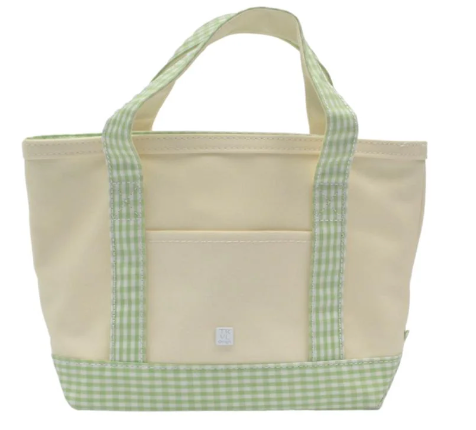 Leaf Gingham Trim Mini Tote
