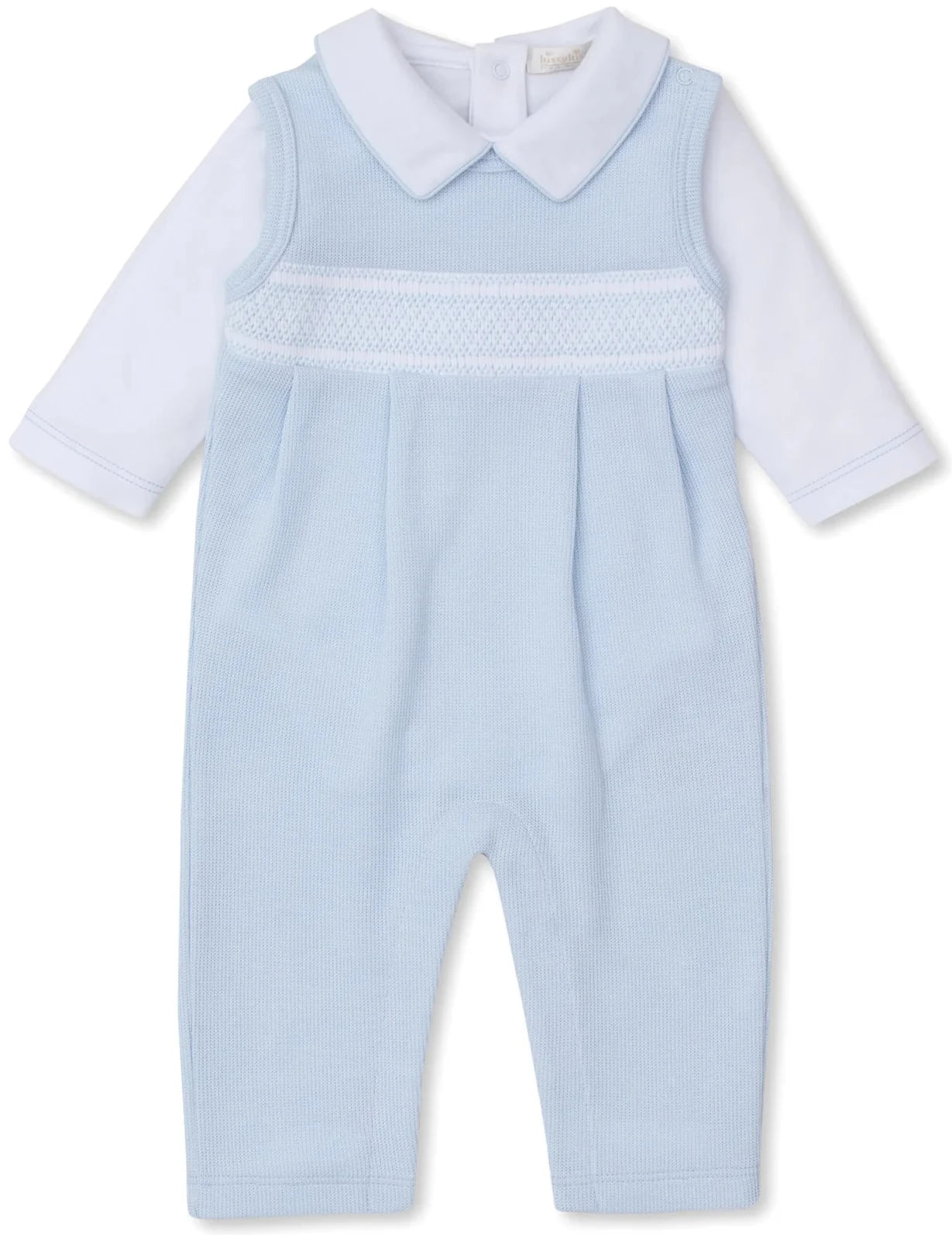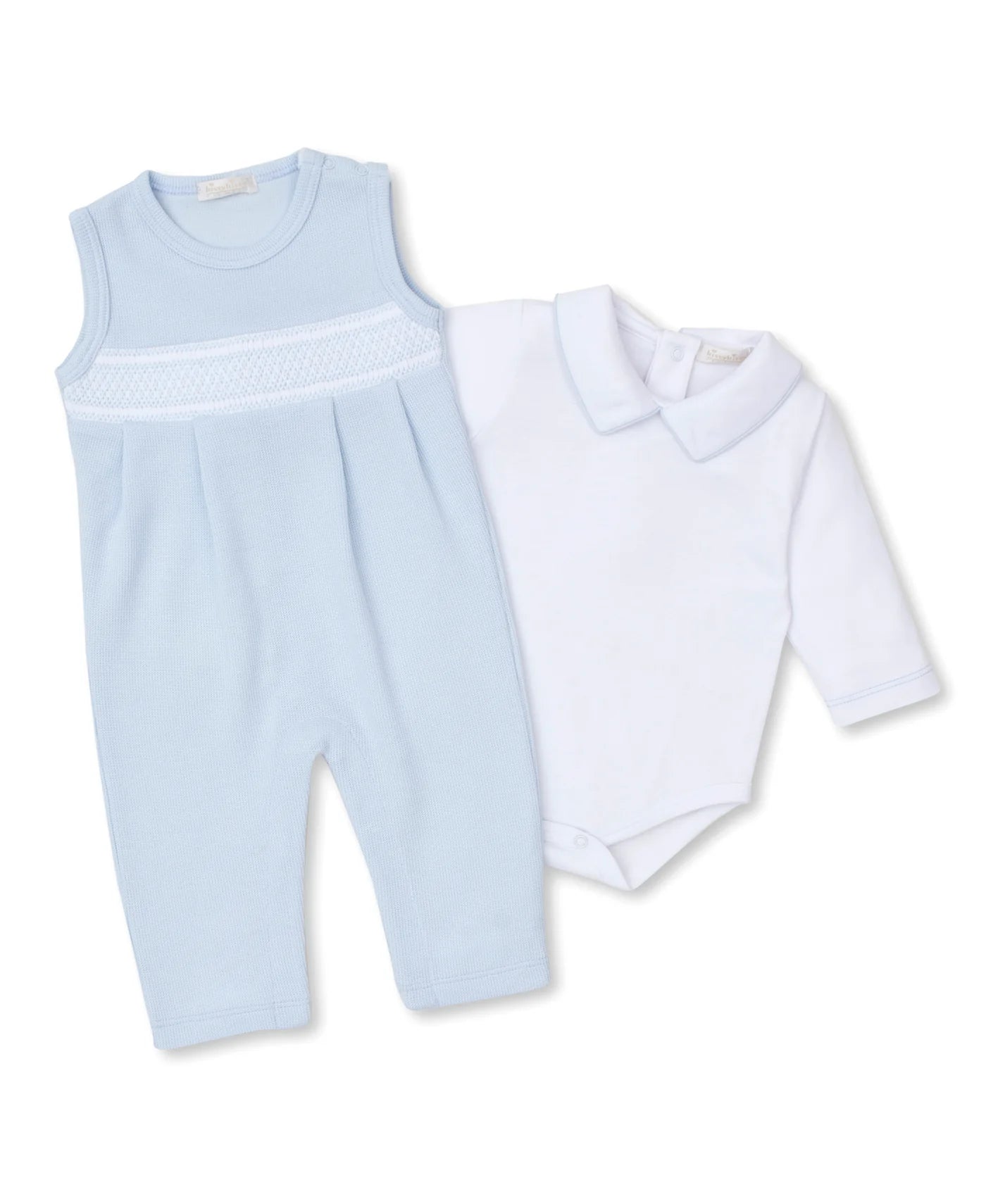 The softest, coziest overall from our CLB Punto Ingles Collection is crafted from the finest Pima cotton, with delicate hand detailing and timeless design for baby.