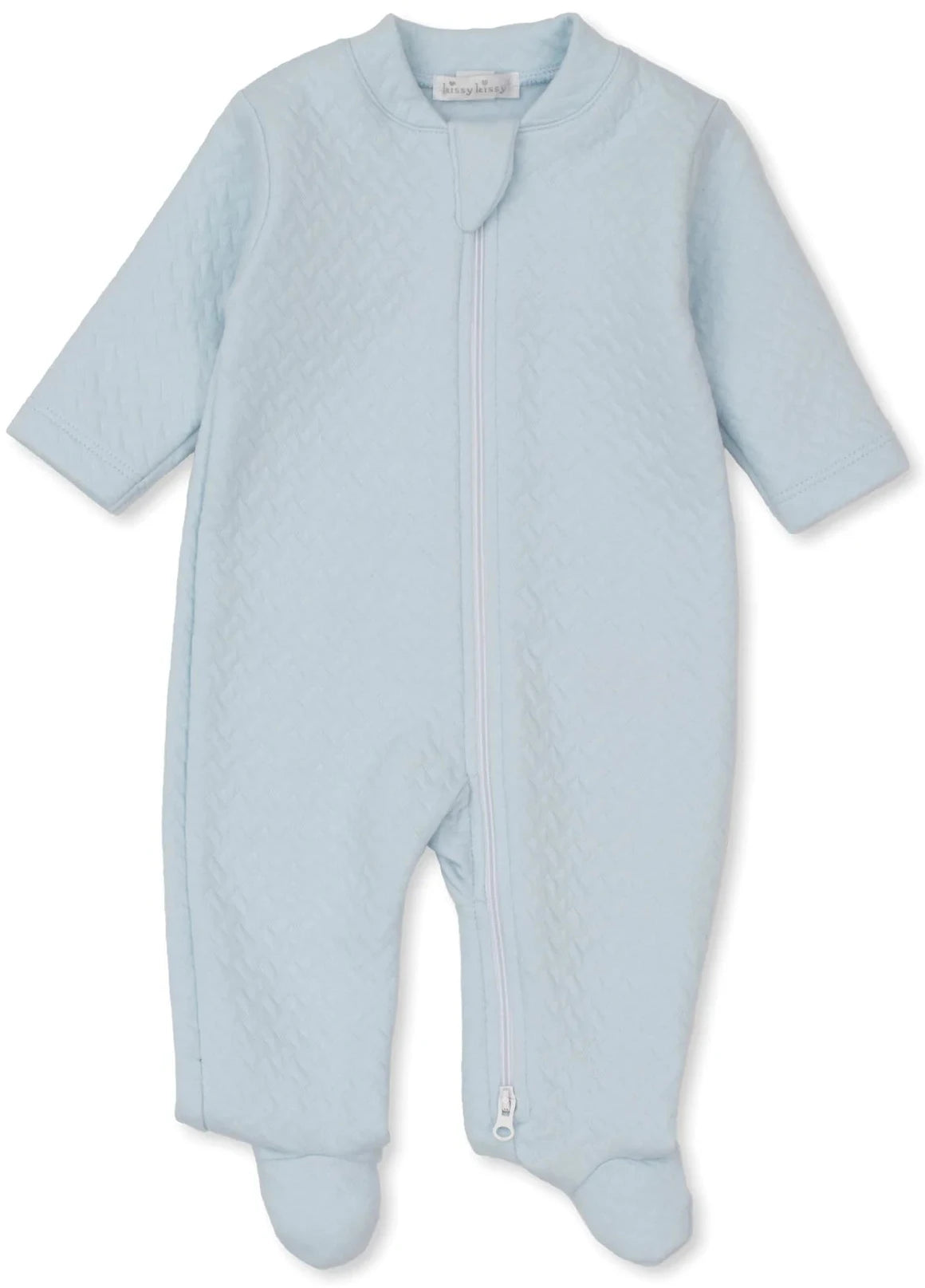 Our Classic Jacquards zippered footie is the perfect textured footie for your baby. Made from the softest Pima cotton for ultimate comfort.