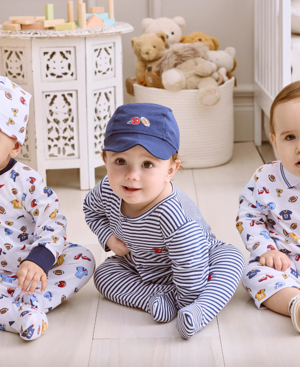 • Sweet stripes and little football themed embellishments cover our cozy footie for your baby. Made from the softest Pima cotton for ultimate comfort.