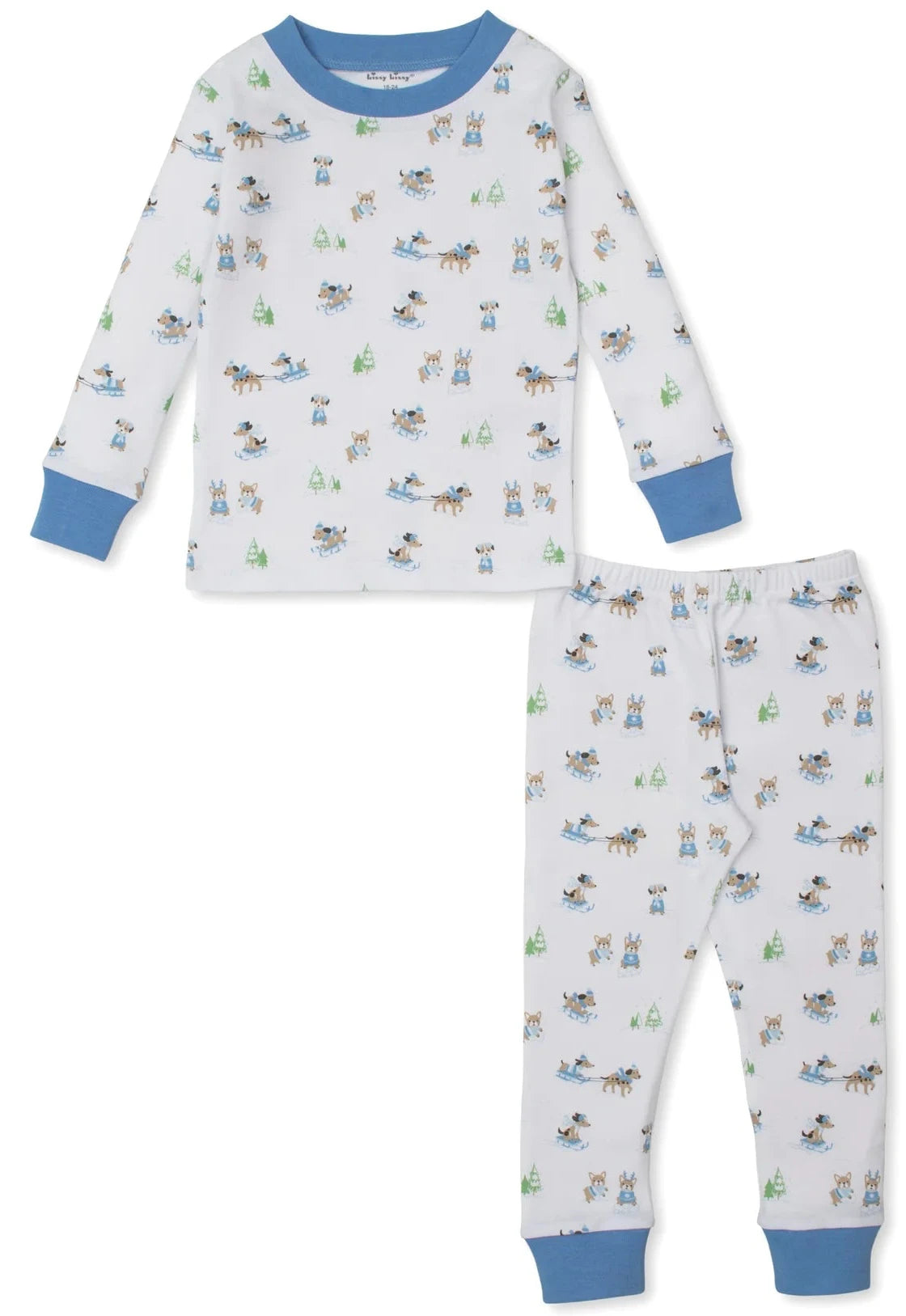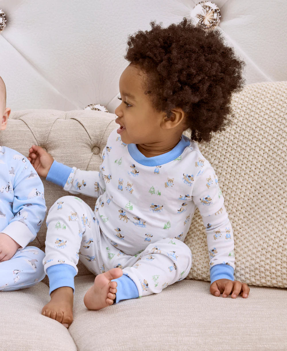 Drift into dreamland in our playfully patterned, two piece pajama set. Featuring our fun puppy's sleigh riding fun print for a cozy fit. Made from super-soft Pima cotton, your precious baby is sure to get a good night's sleep!