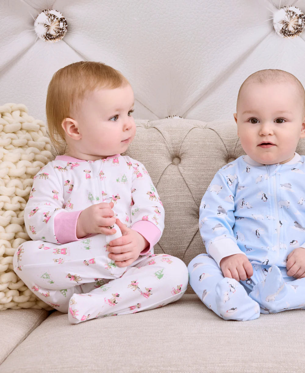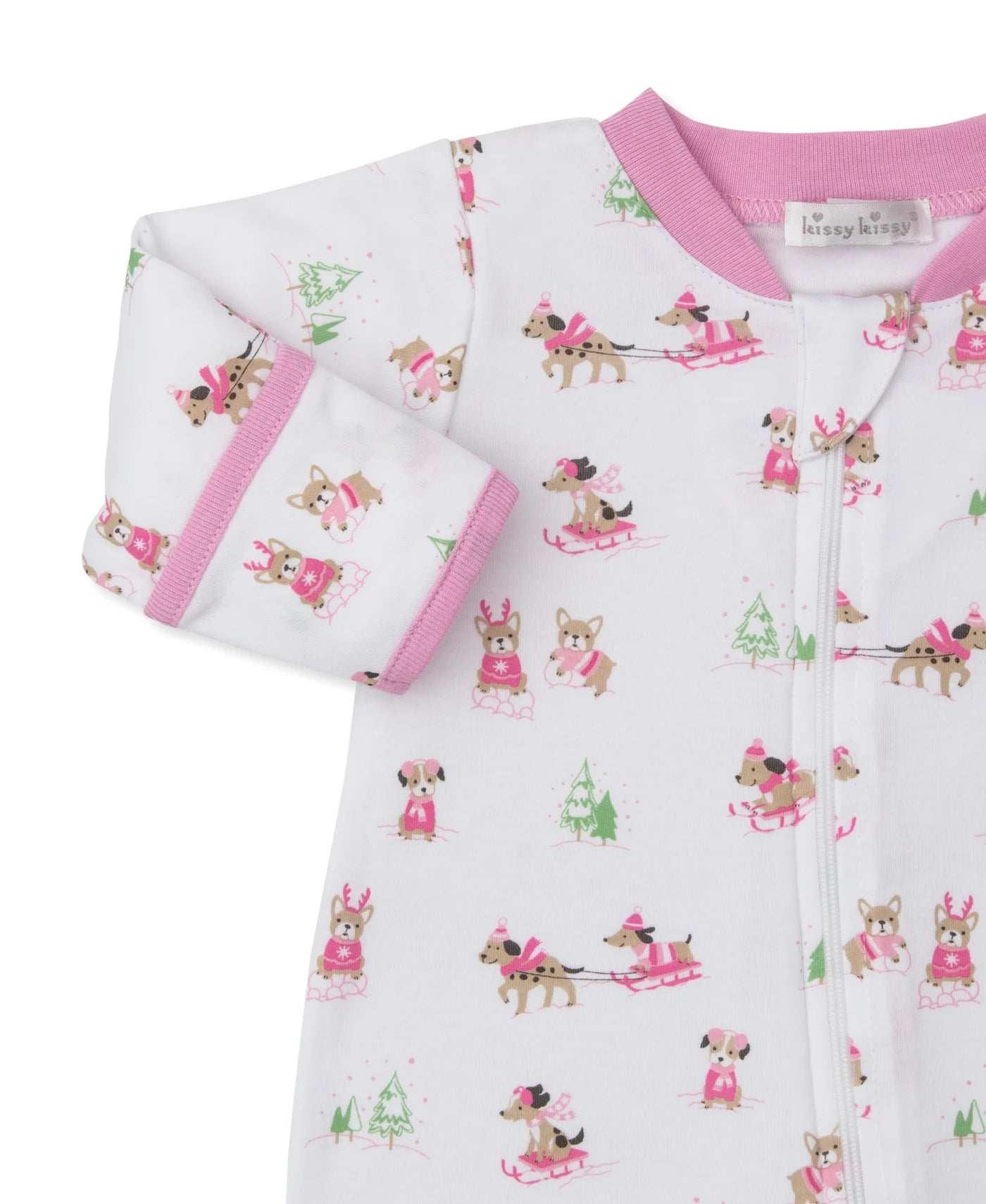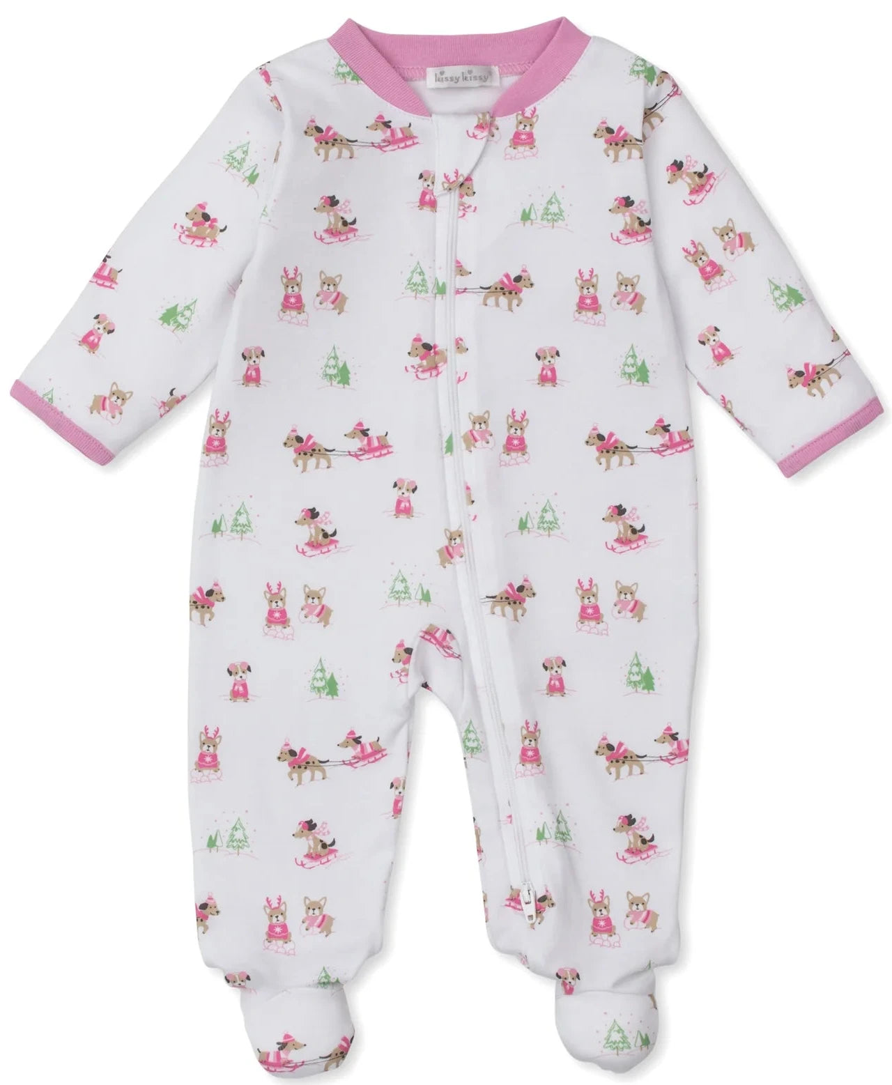 Your baby will be ready for the day in our puppy's sleigh riding fun zippered footie. Made from the softest Pima cotton for ultimate comfort.