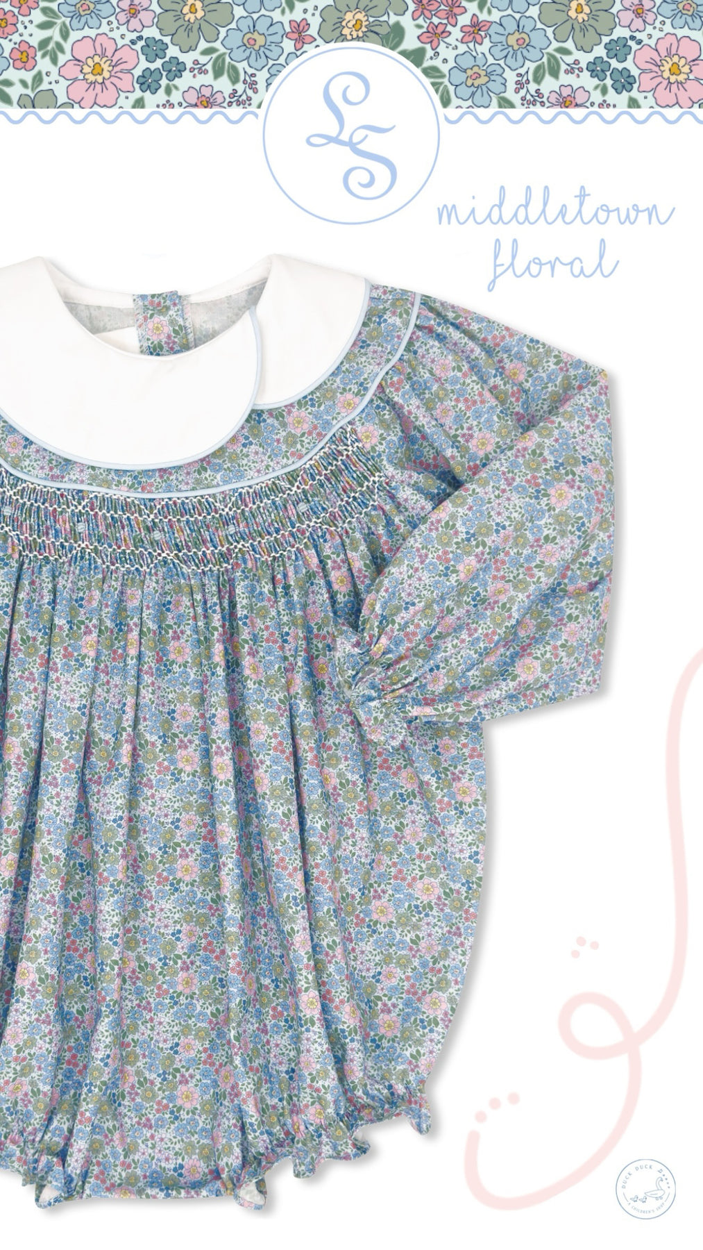 Courtney Bubble - Middletown Floral Woven with Pink Smocking