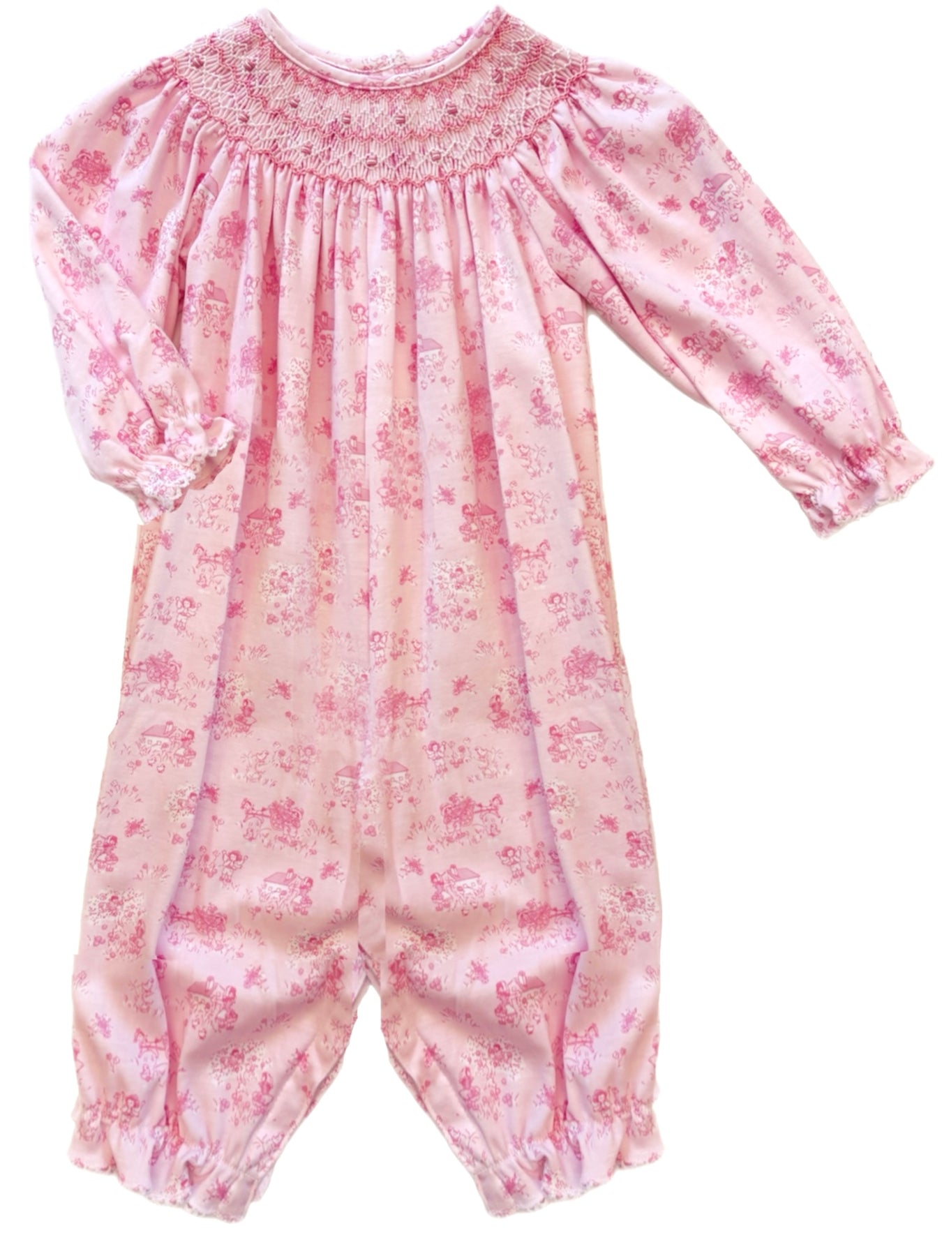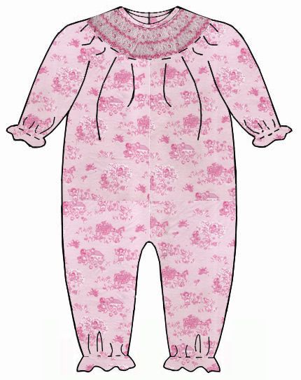 FRENCH TOILLE - Pink French Toille print knit girl´s long footie L/S NO/FEET