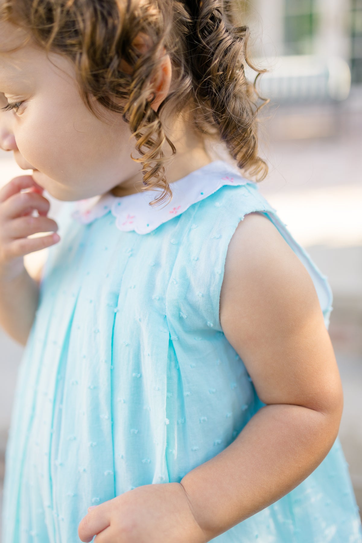 The Suzette Swiss collection brings together so many stunning elements of vintage style! With pin tucks on the chest and the sweetest vintage-inspired collar with hand embroidery, it's truly lovely. Every little girl needs a dotted swiss in their closet.