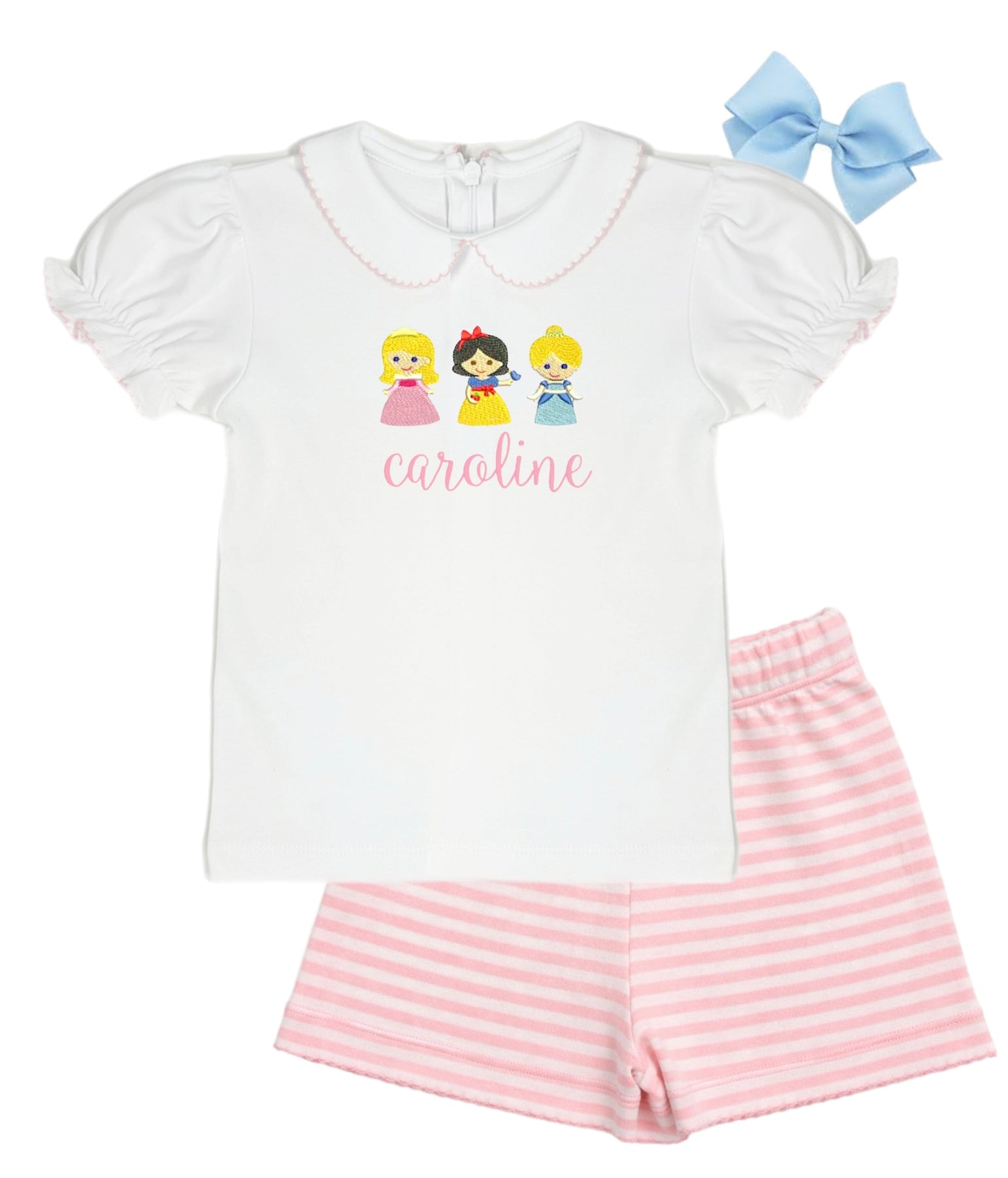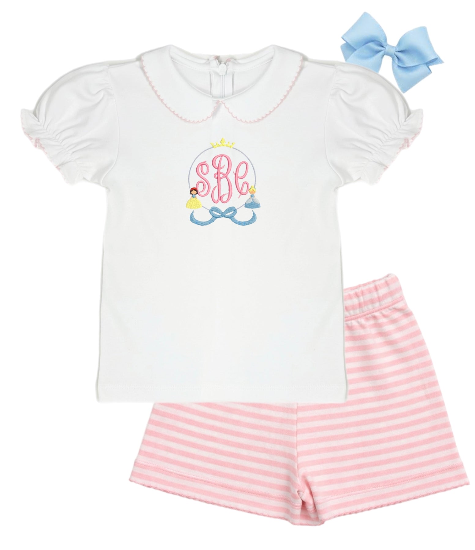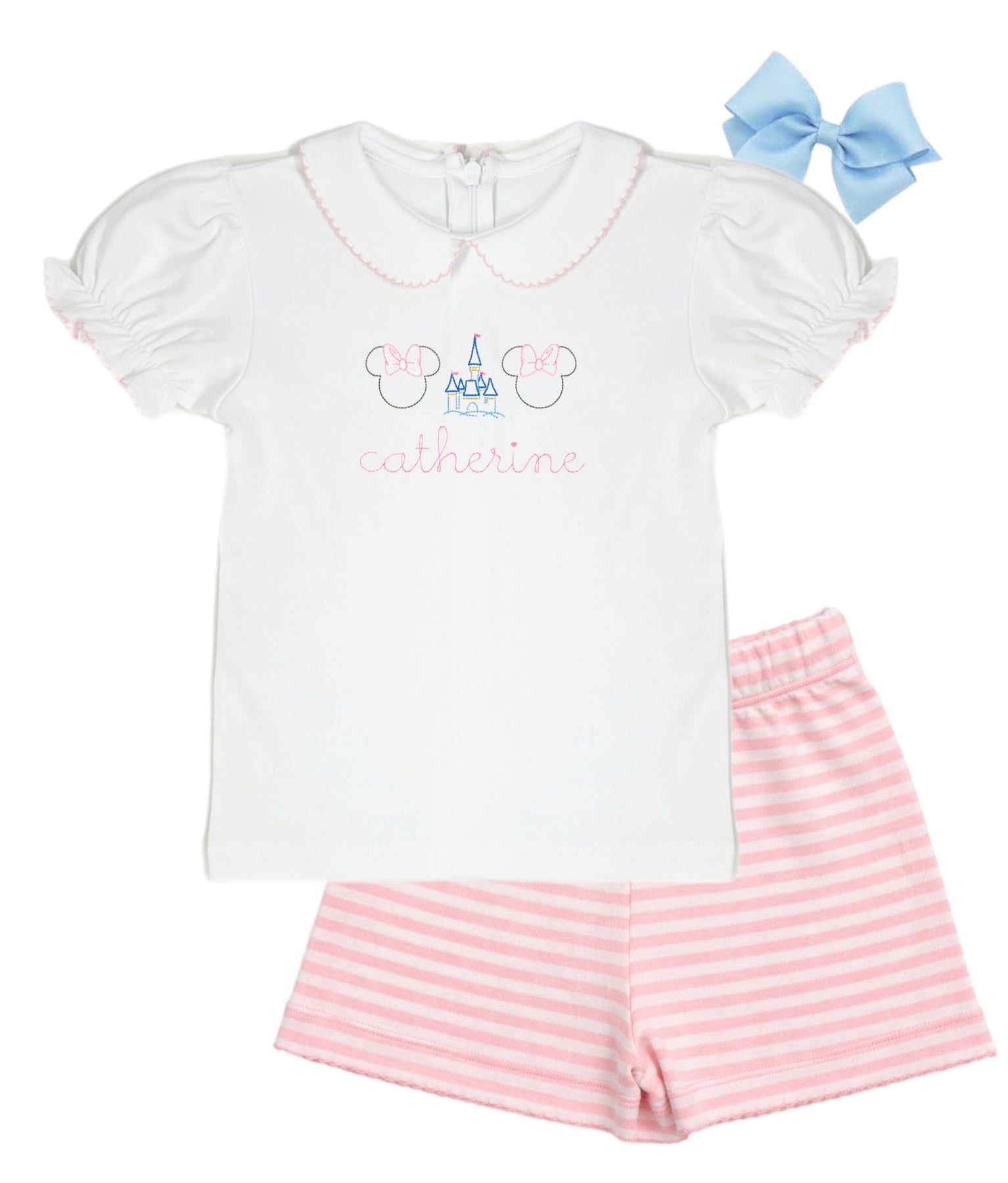 Knit Picot Trim Shorts - Light Pink and White Stripe