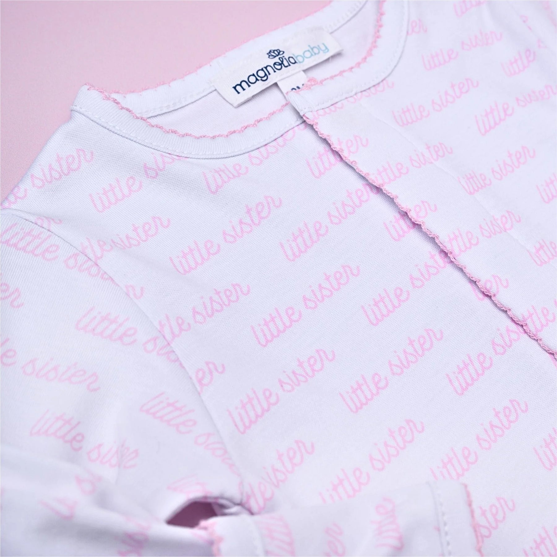 - All-Over "Little Sister" Print Pink: A sweet, personalized design.