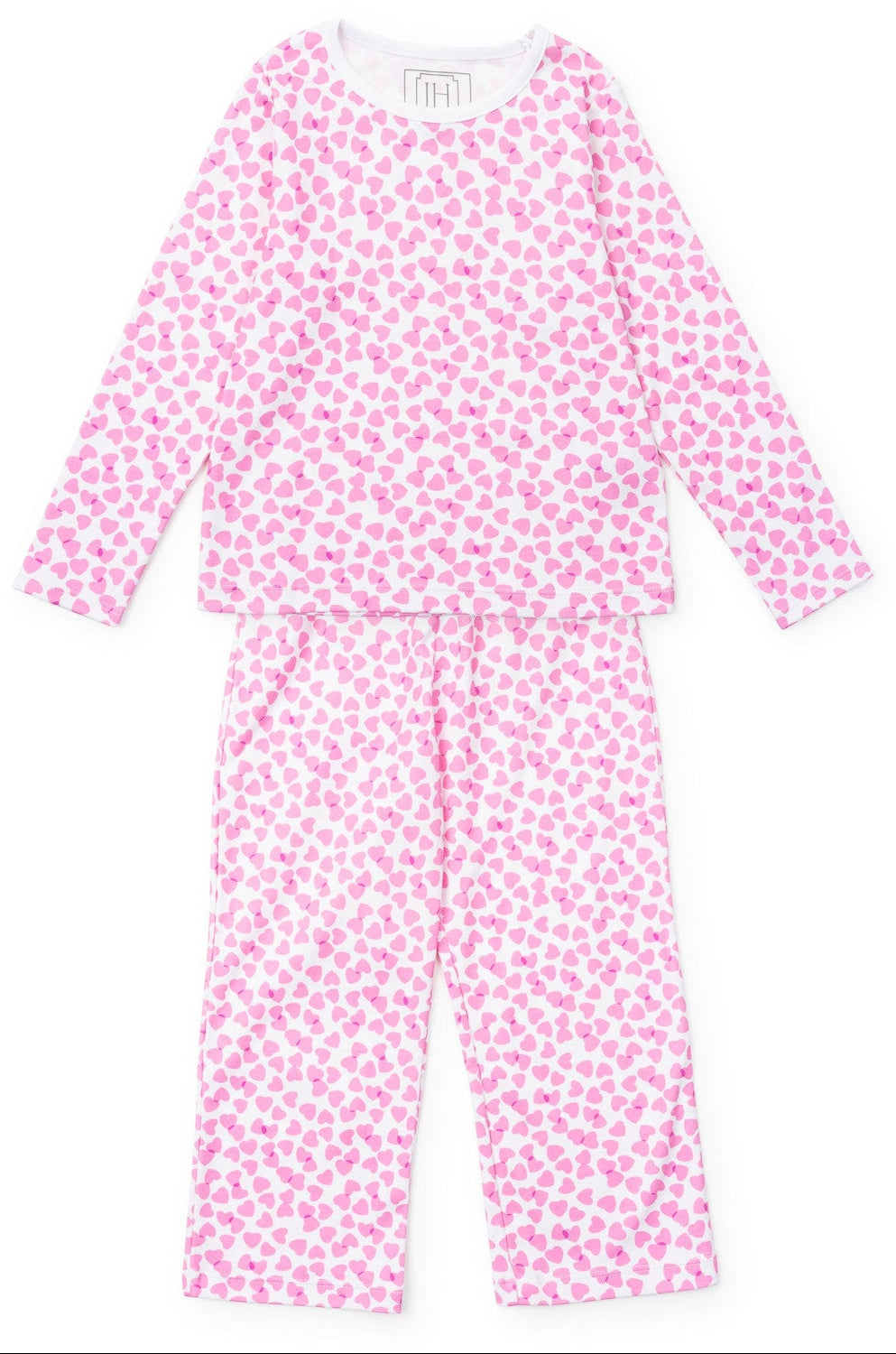 Pima cotton long sleeved top and pant set. Top has white piping detail around the neck and pants have an elastic waistband.