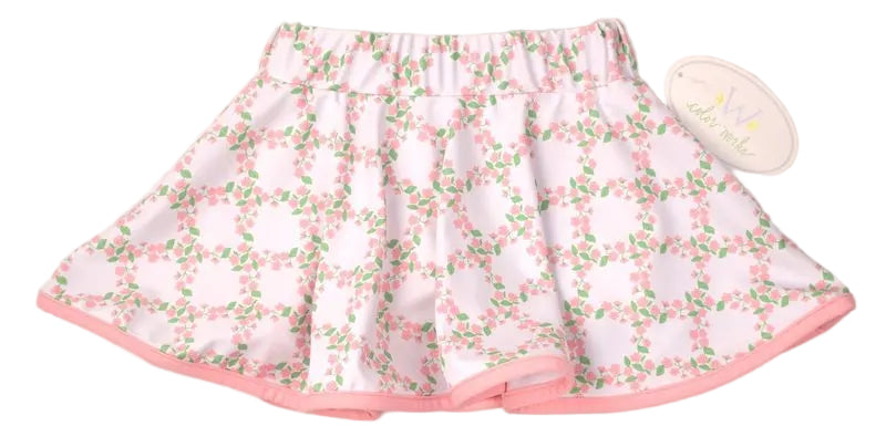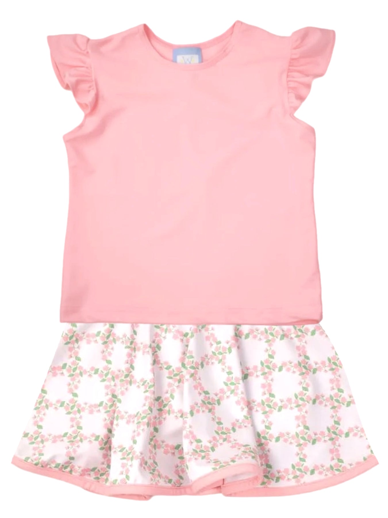 Pink Angel Sleeve Top, Floral Trellis Floral Skort