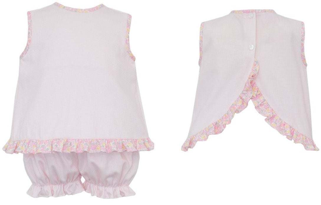 *PRE-ORDER* Pink Gingham/Floral Trim Bloomer Set