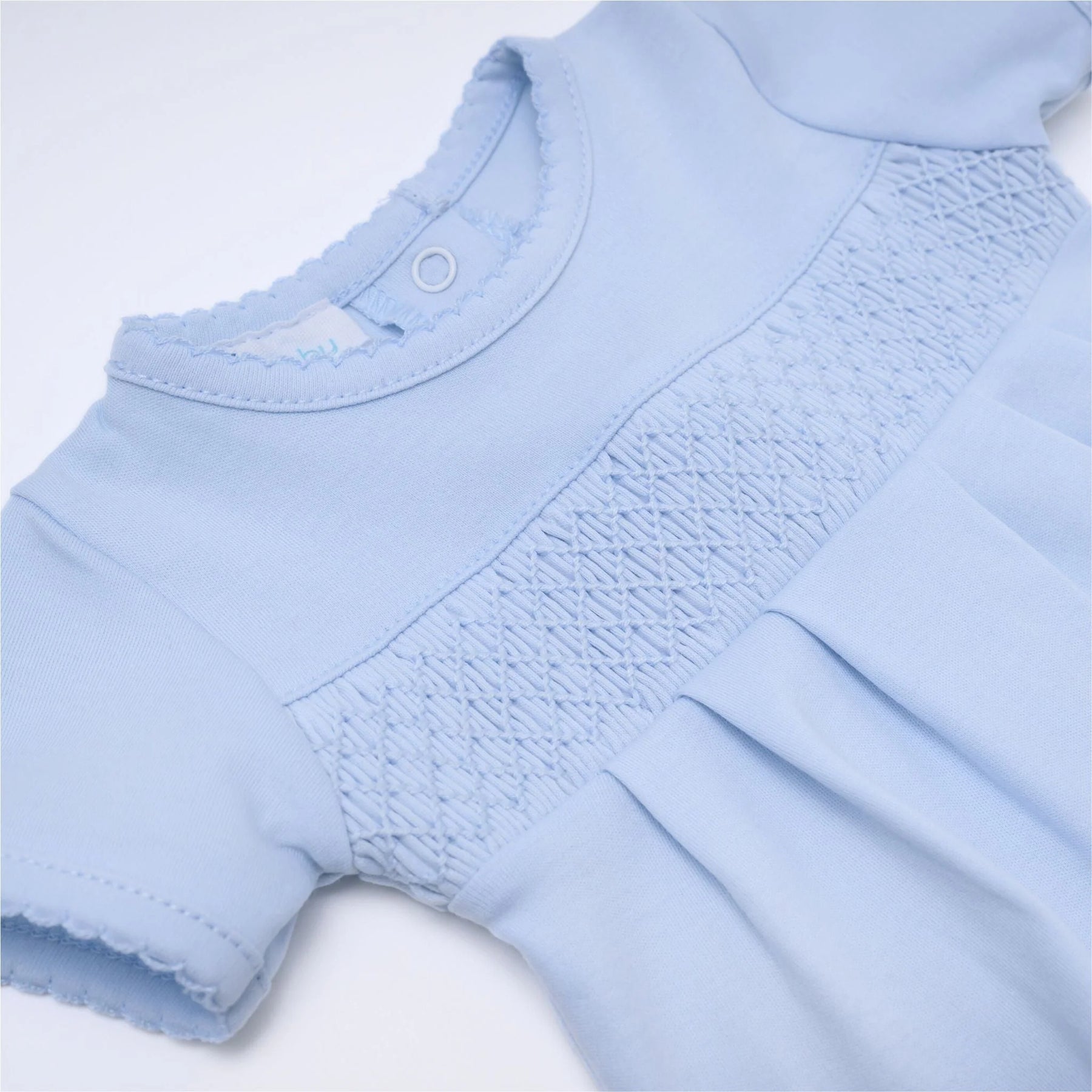 Dress your little one in luxurious comfort with this light blue smocked bubble from Magnolia Baby. Crafted from 100% Pima cotton, this essential piece features delicate smocking detail and a snap back closure for easy changing. This classic style is perfect for everyday wear or special occasions.