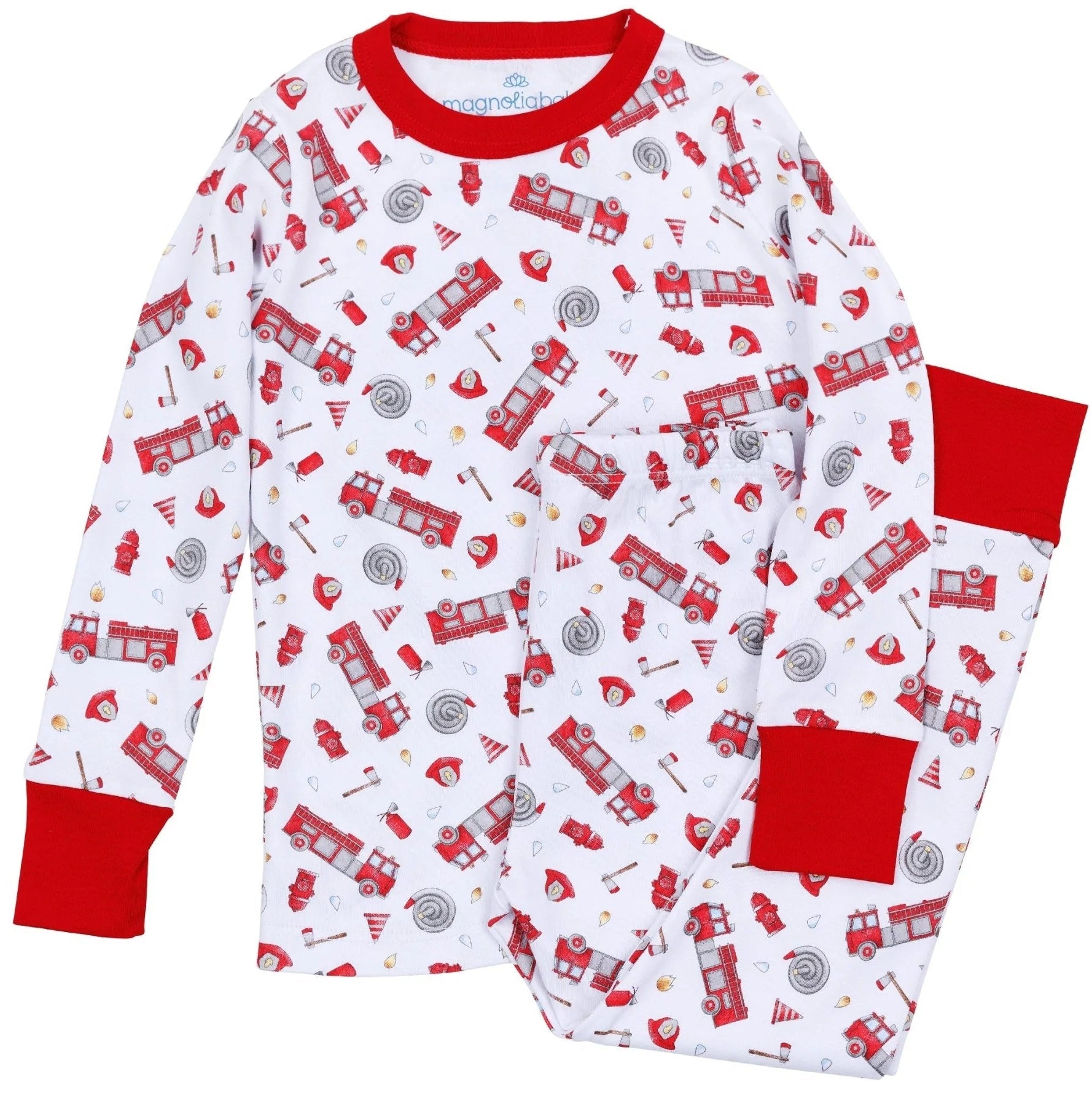The **To the Rescue Long Pajamas** ensure a cozy and secure night’s sleep for your little hero. Crafted from luxurious Pima Cotton and featuring the exciting, **all-over firefighter-themed print**, this two-piece set offers maximum comfort. The classic, fitted design is perfect for toddlers ready to dream of service and adventure.