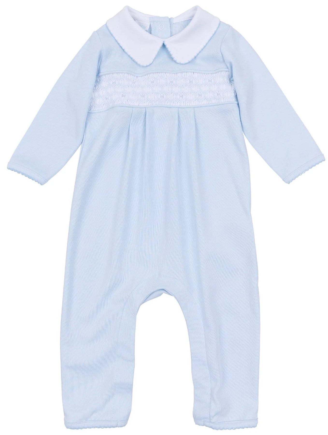 Walker's Classics Smocked Collared Long Playsuit - Blue