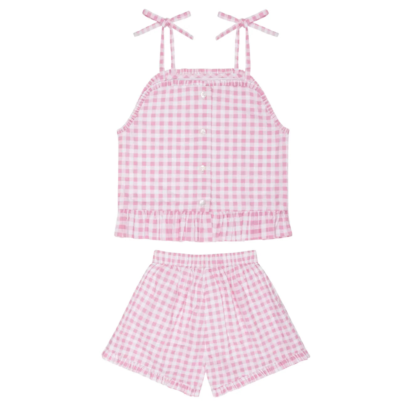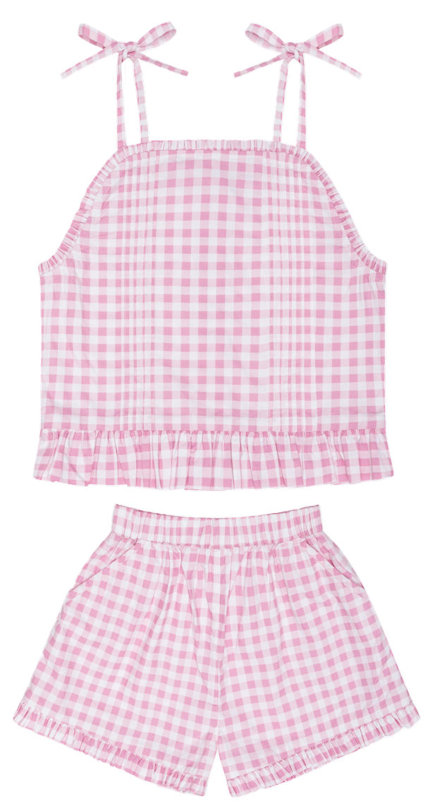 this set for girls is both fun and functional. an easy outfit for days in the sun, it includes a breezy top with tie straps and pintuck detailing as well as pull-on shorts. style tip: wear as a set or styled with your other minnow favorites.