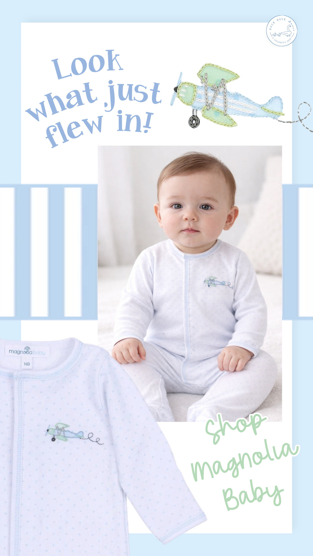 This classic footie is perfect for all-day cozy wear. Made from our luxurious Pima Cotton, this piece features delicate airplane embroidery on a subtle minidots fabric, with a beautiful picot trim along the edges.