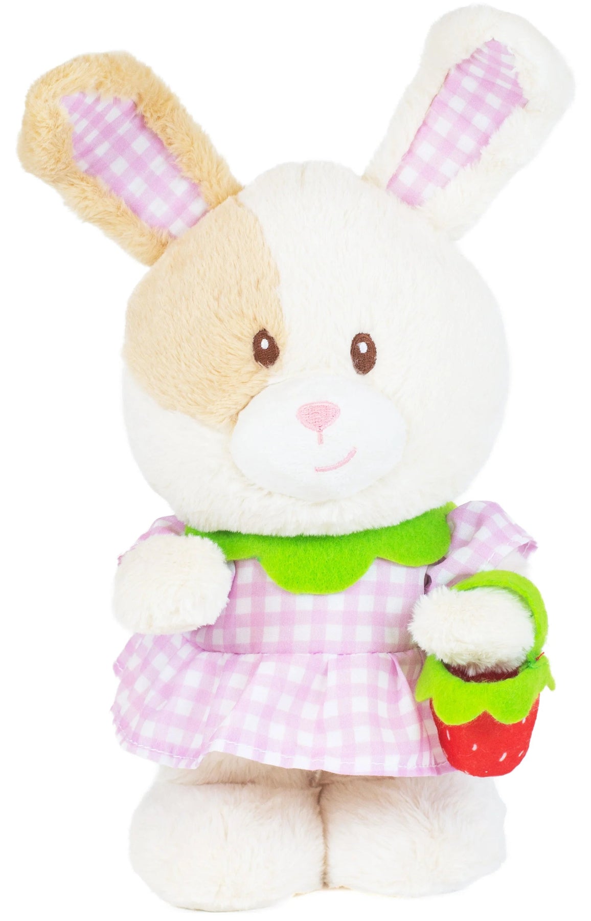 Get ready for the Easter Egg hunt with Bouncing Buttercup! This cute bunny wears a pink pastel gingham dress and holds a precious strawberry bag. Perfect for easter egg hunts! Buttercup is a 10" Bunny that steps side to side to "B U N N Y" (Tune of B I N G O)
