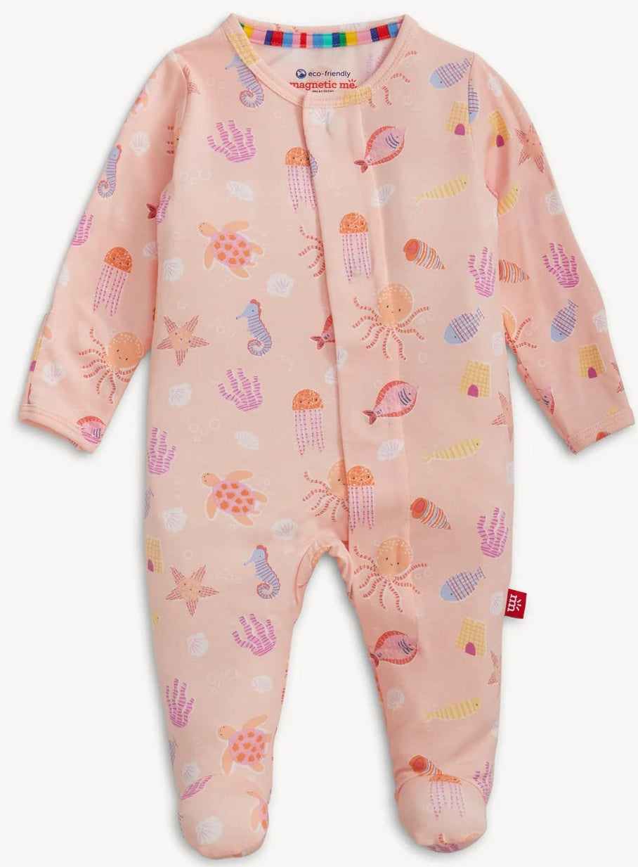 Our modal Magnetic Footie, designed with magnetic closures, is a quick and quiet lifesaver for all-day and middle-of-the-night diaper changes—that's up to 12 times a day (!). Made from sustainable modal, it's a silky-soft and temperature-regulating sleeper to keep your little one comfy from head to toe.