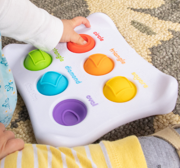 BPA-Free, made with food-grade silicone buttons, and designed just right for little hands, the Dimpl Duo is an ideal way to get the most out of sensory play.
