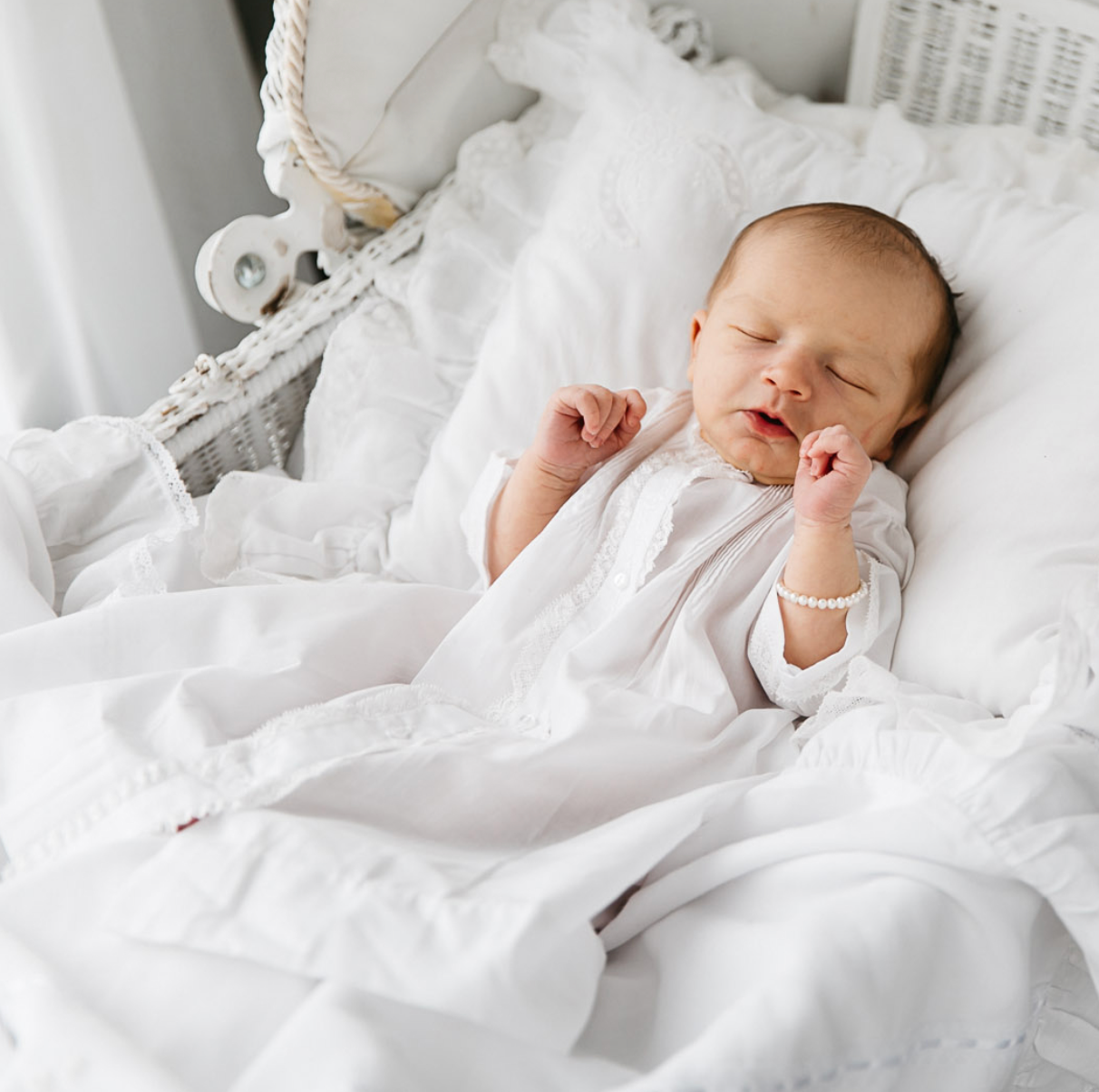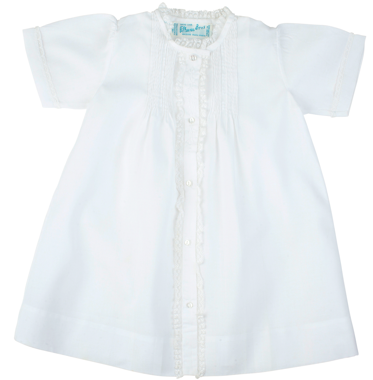 Your little princess deserves only the best - that's why we've designed this beautiful, vintage styled day gown, with her in mind! The gown features fluted lace trim around the neck, sleeves, and button placket, as well as hand stitched pintucks and floral embroidery. Comes beautifully folded and packaged, making it the perfect heirloom gift for all your loved ones!