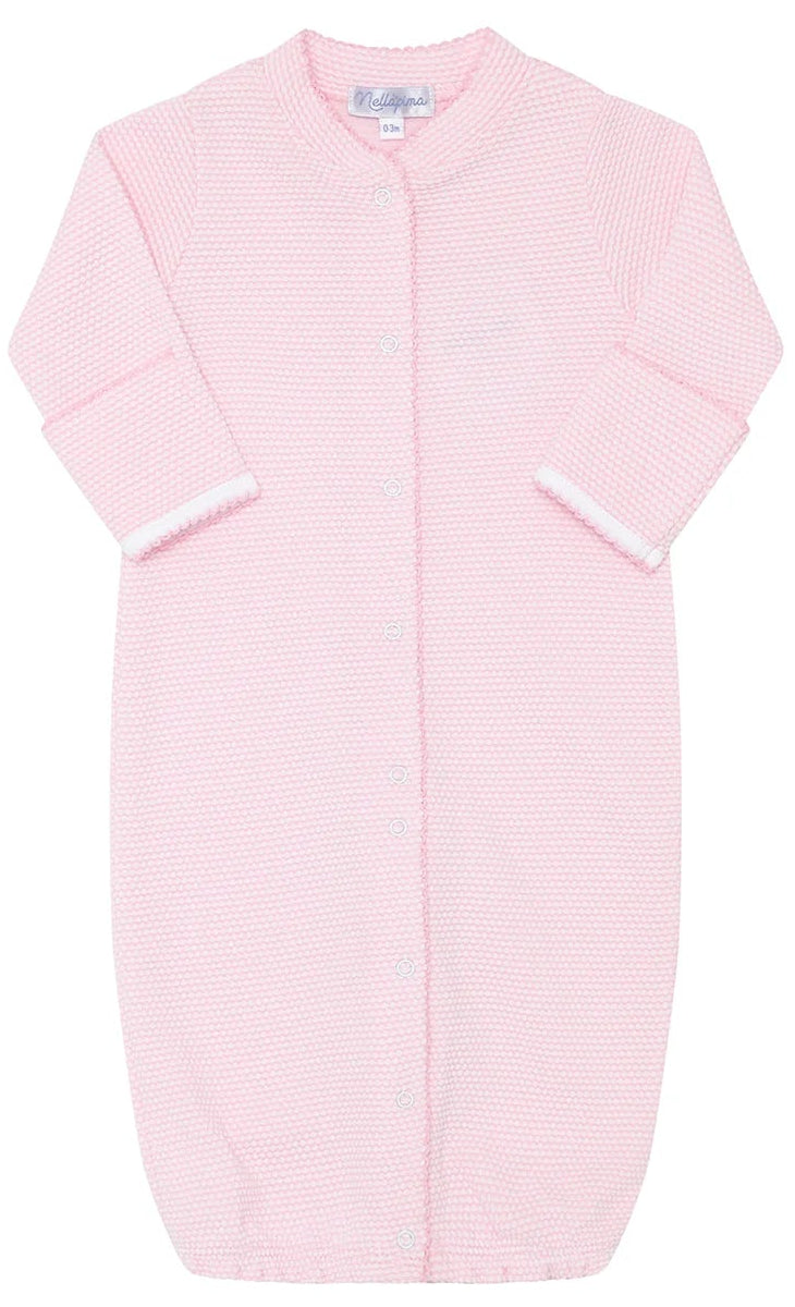 The baby converter gown we offer is a true game-changer for parents! It allows for a quick and effortless transition from a cozy gown for sleepy time to a practical playsuit for playtime, simply by changing the snaps.