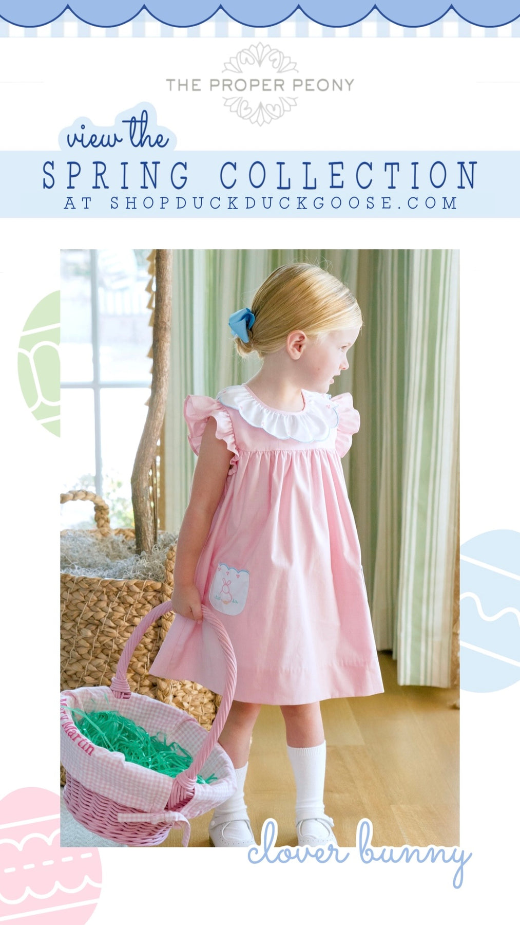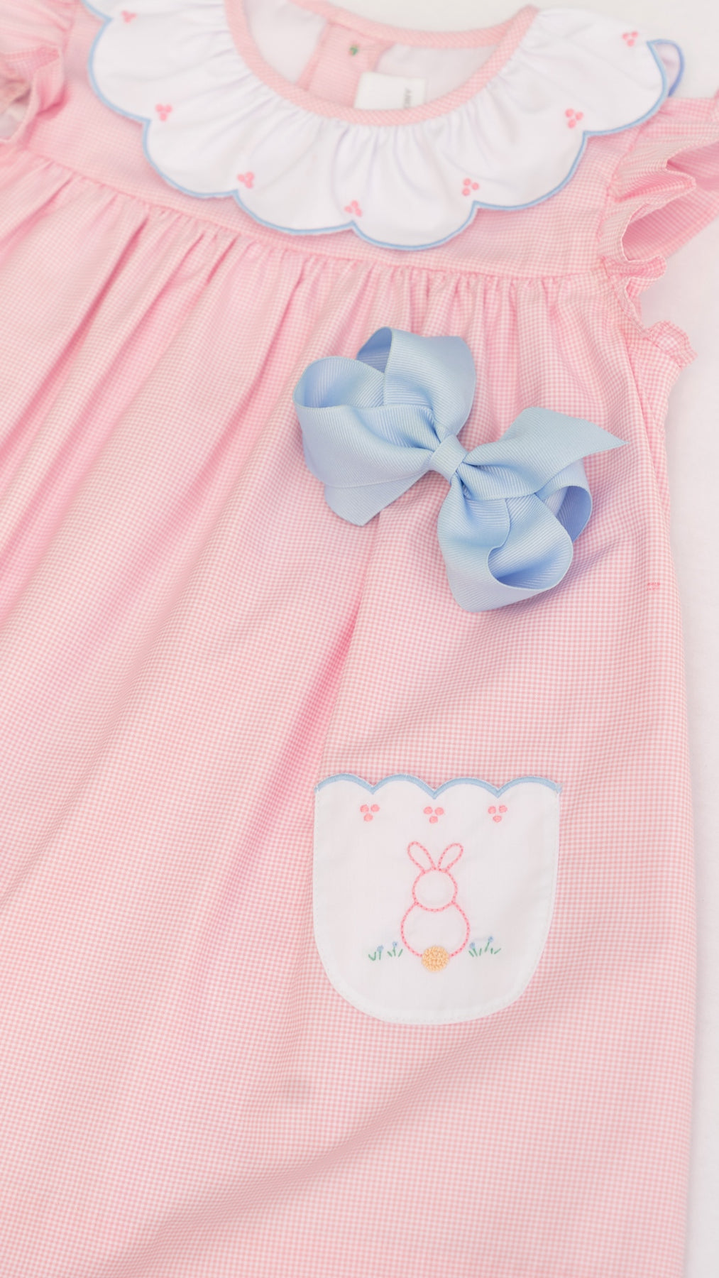 Be dressed and ready for the Easter season in our Clover Bunny collection! Soft pink with blue scallop trim and hand-embroidered bunnies makes for the sweetest styles.