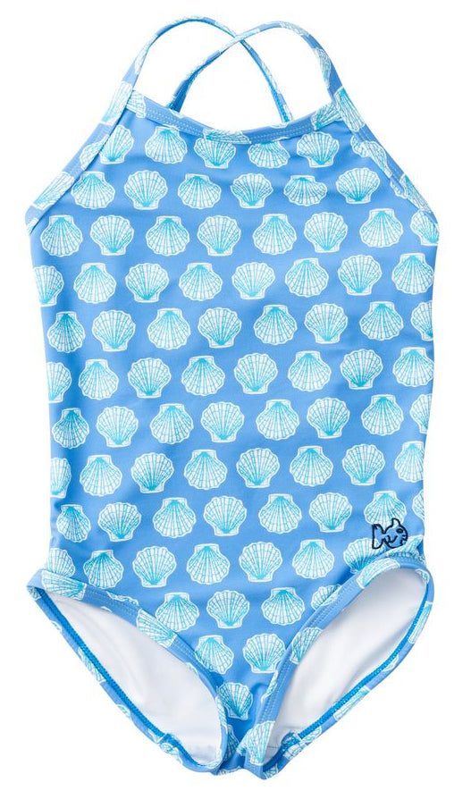 Girls Crossback One Piece Swimsuit - Blue Shells