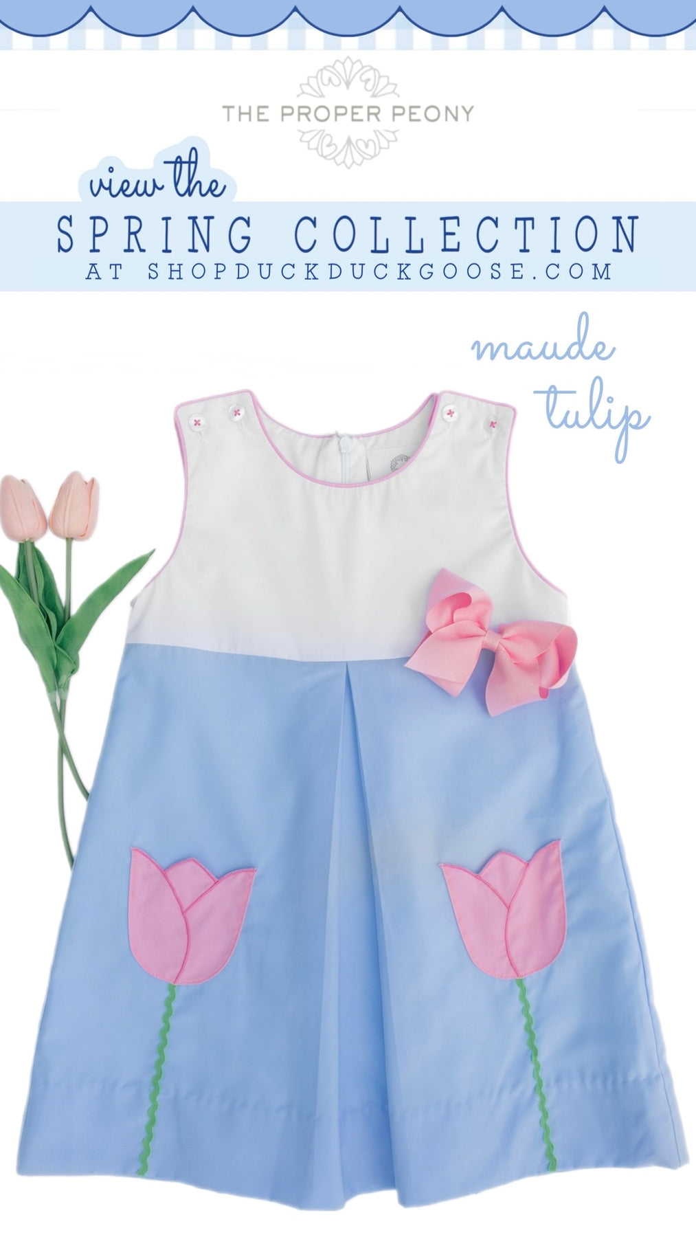 Nothing says spring like a field of tulips. This Maude collection is sure to turn heads. The combination of blue and white with touches of pink create the perfect palette to take you through spring an summer.