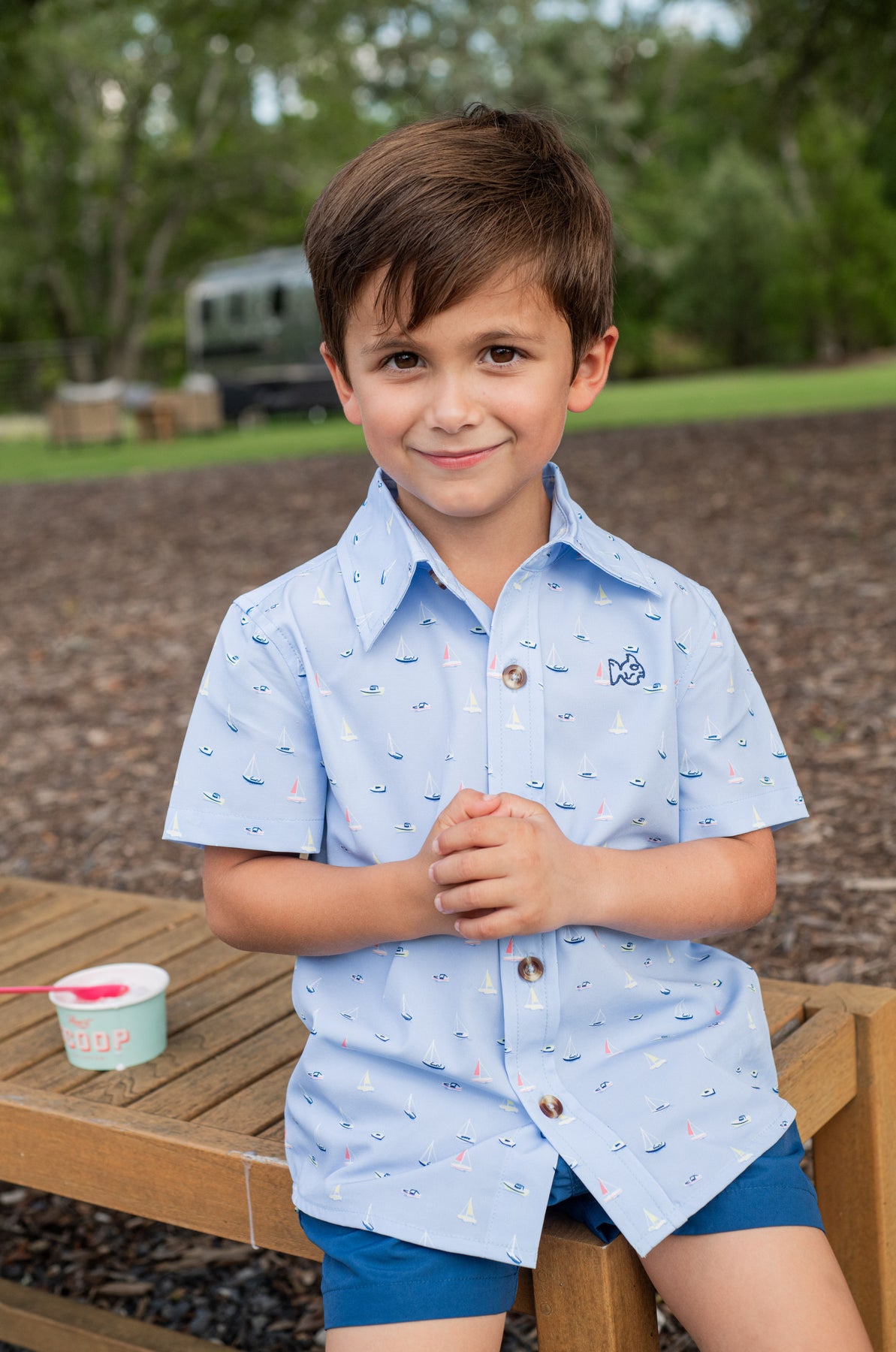 S/S Button Down Shirt - Windsurfer Boats In the Bay
