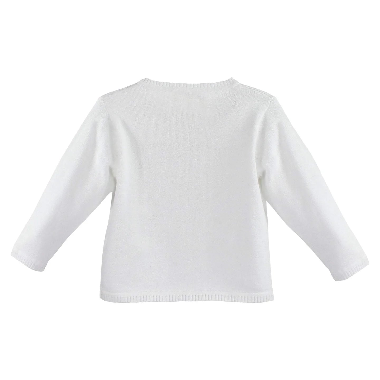 Our traditional and classic ladder edge cardigan makes a beautiful accessory for family photos and special occasions. The beautifully detailed ladder edge adds a touch of interest to this already perfect basic sweater. This cardigan sweater makes the perfect addition to any outfit! The soft 100% cotton material is comfortable and easy to care for – just machine wash and tumble dry. This simple yet sweet cardigan is perfect for completing holiday outfits for Christmas or Easter and also great for church outfits and weddings too!